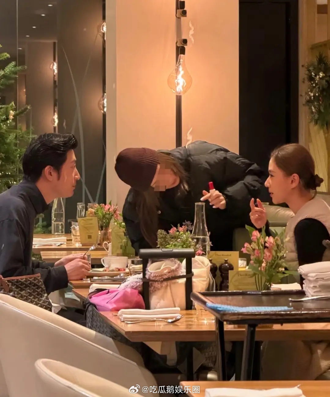伦敦偶遇窦骁何超莲,女方边吃饭边有化妆师补妆,男方目光难移!