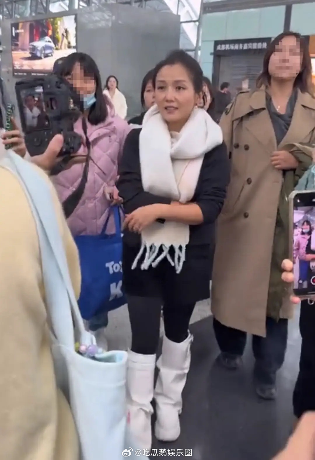 何洁现身机场,穿衣打扮保持20年前审美,素颜黑又显老撞脸郑佩佩!!!