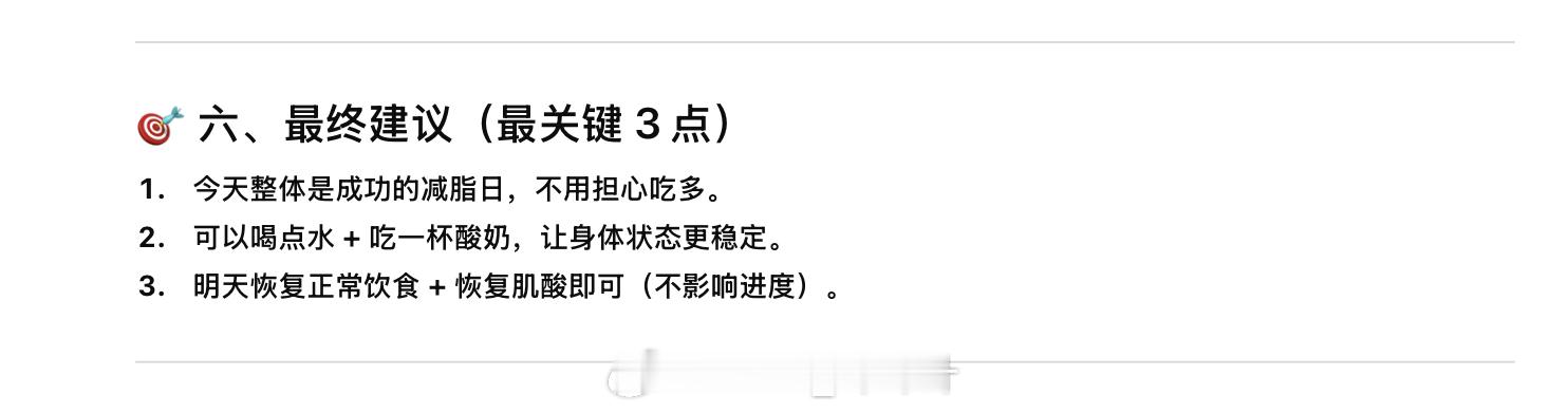 今天下午一直在睡觉,没锻炼就权当是休息日了。 问了一下GPT,说这样做挺好的,算是一个成功的减脂日,明天起来体脂会继续稳妥的降,肌肉量会保持不变,这挺好的。明天练胸+三头,要把推胸重量加到65KG了,狠狠练起来。