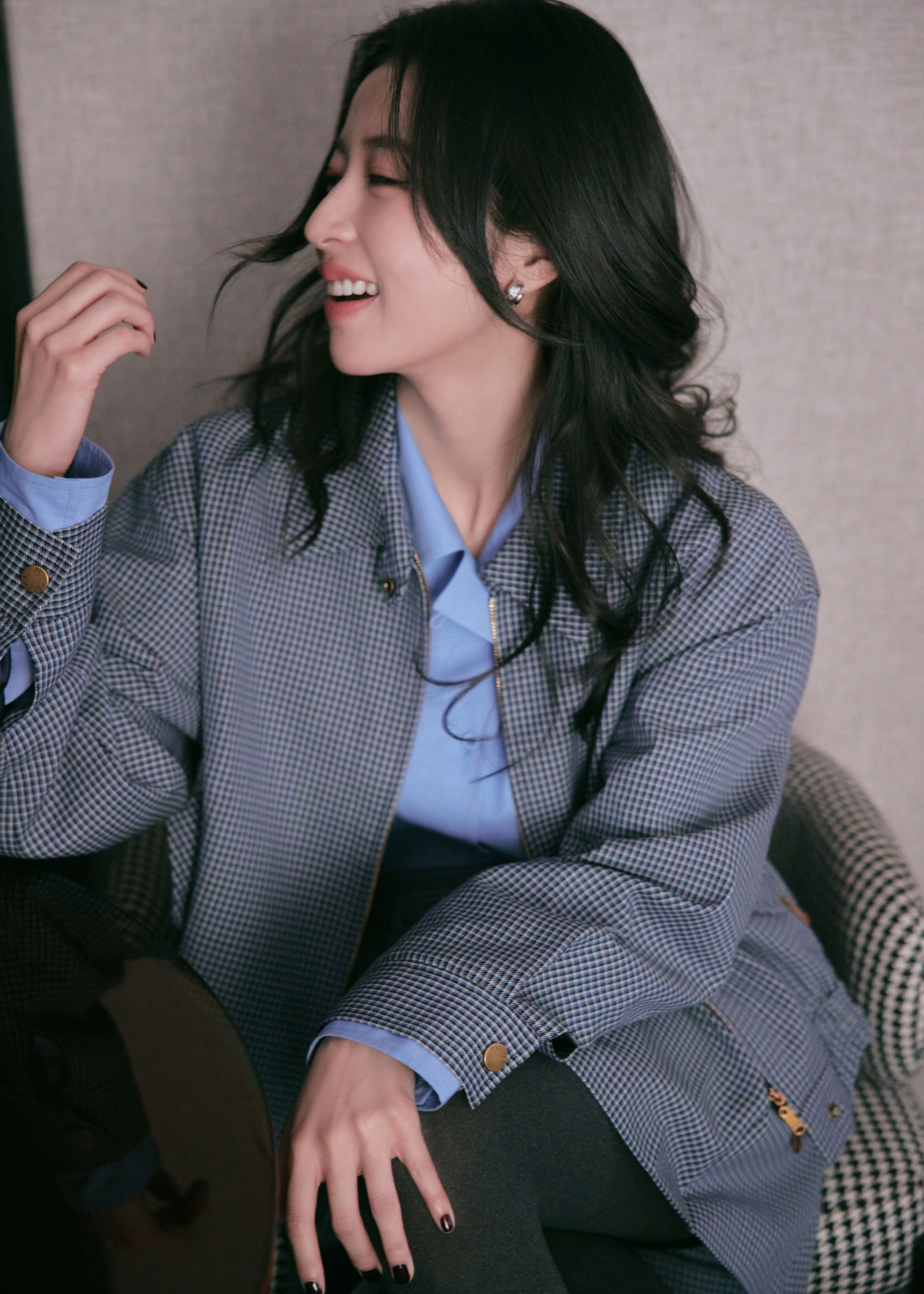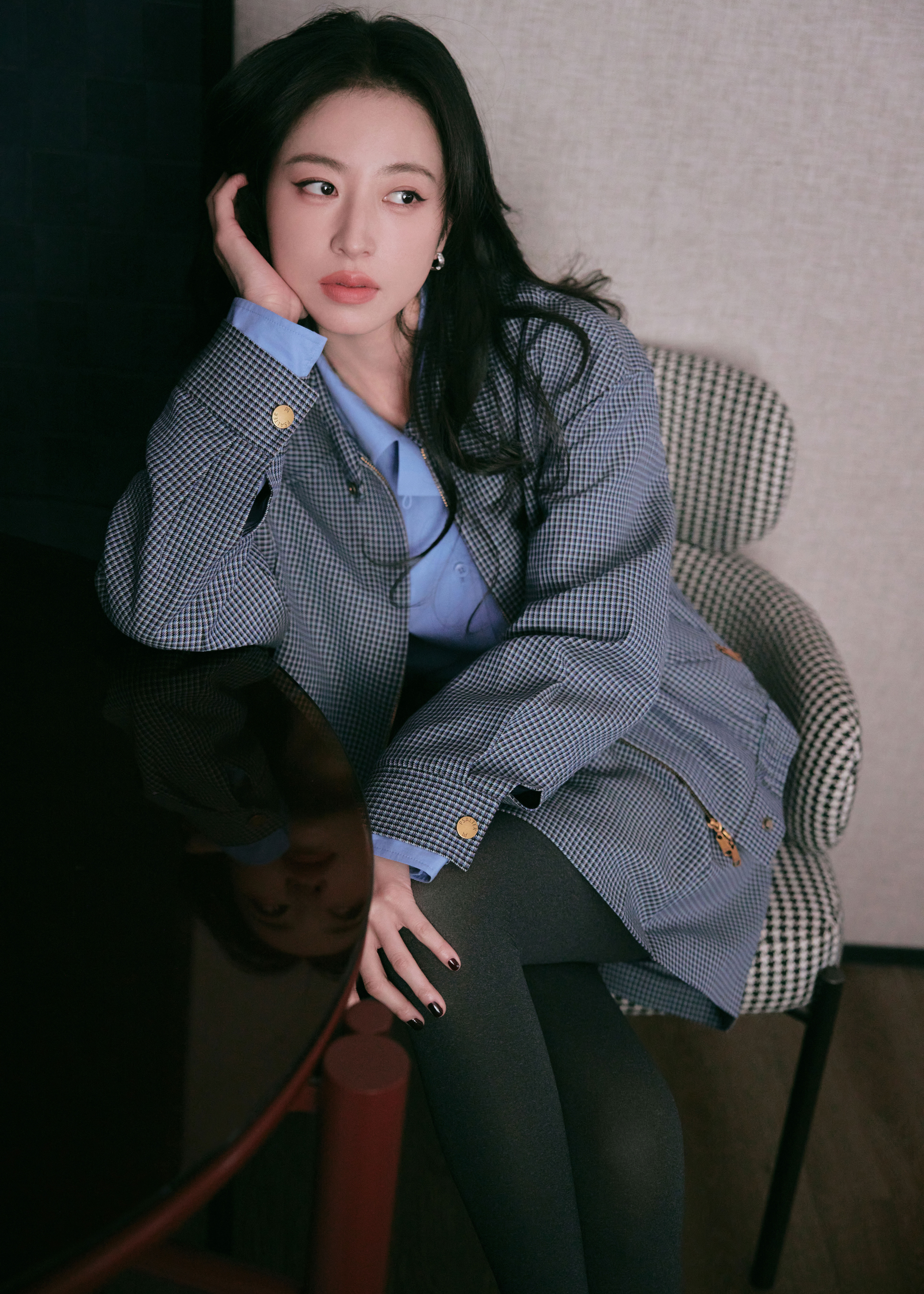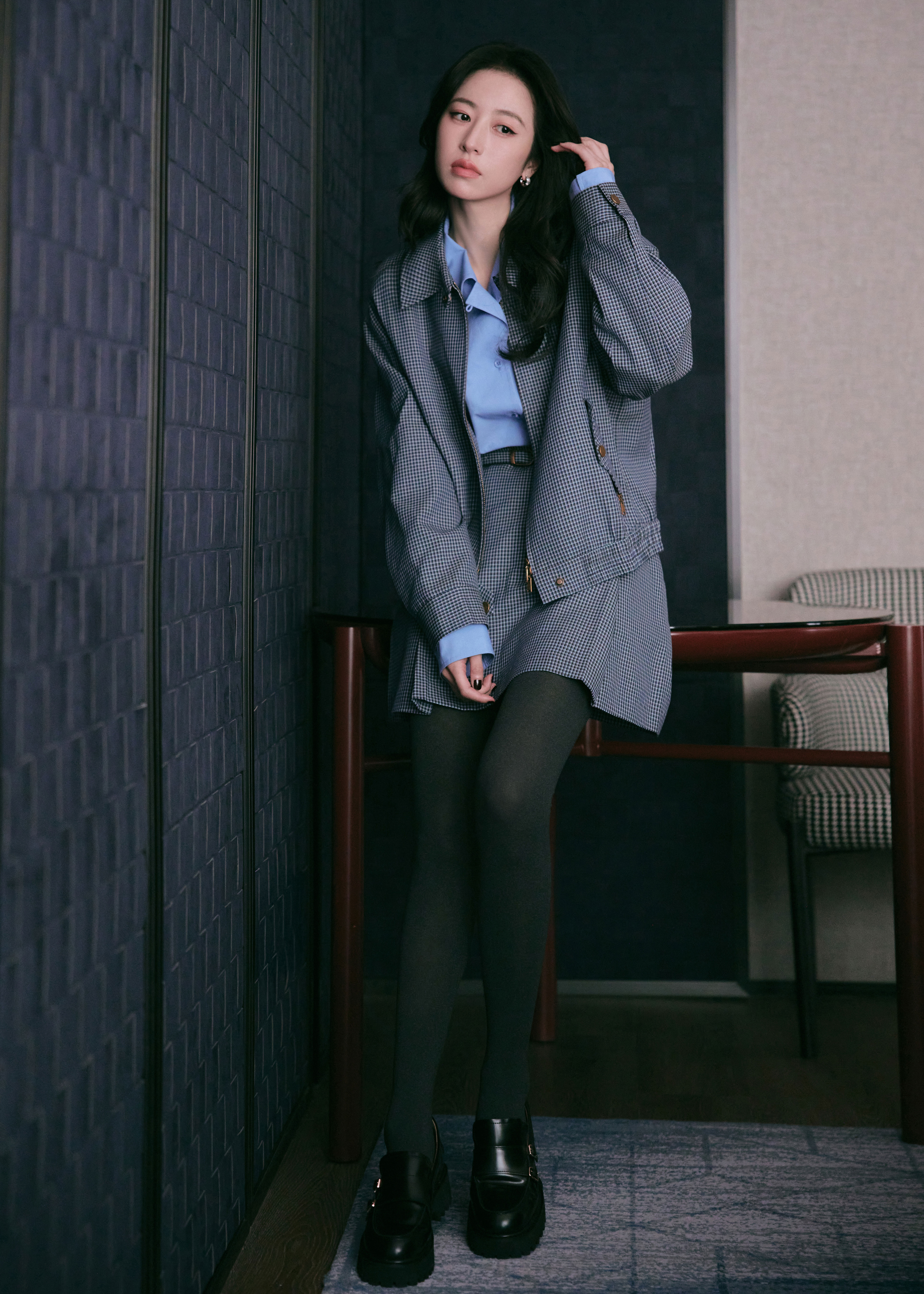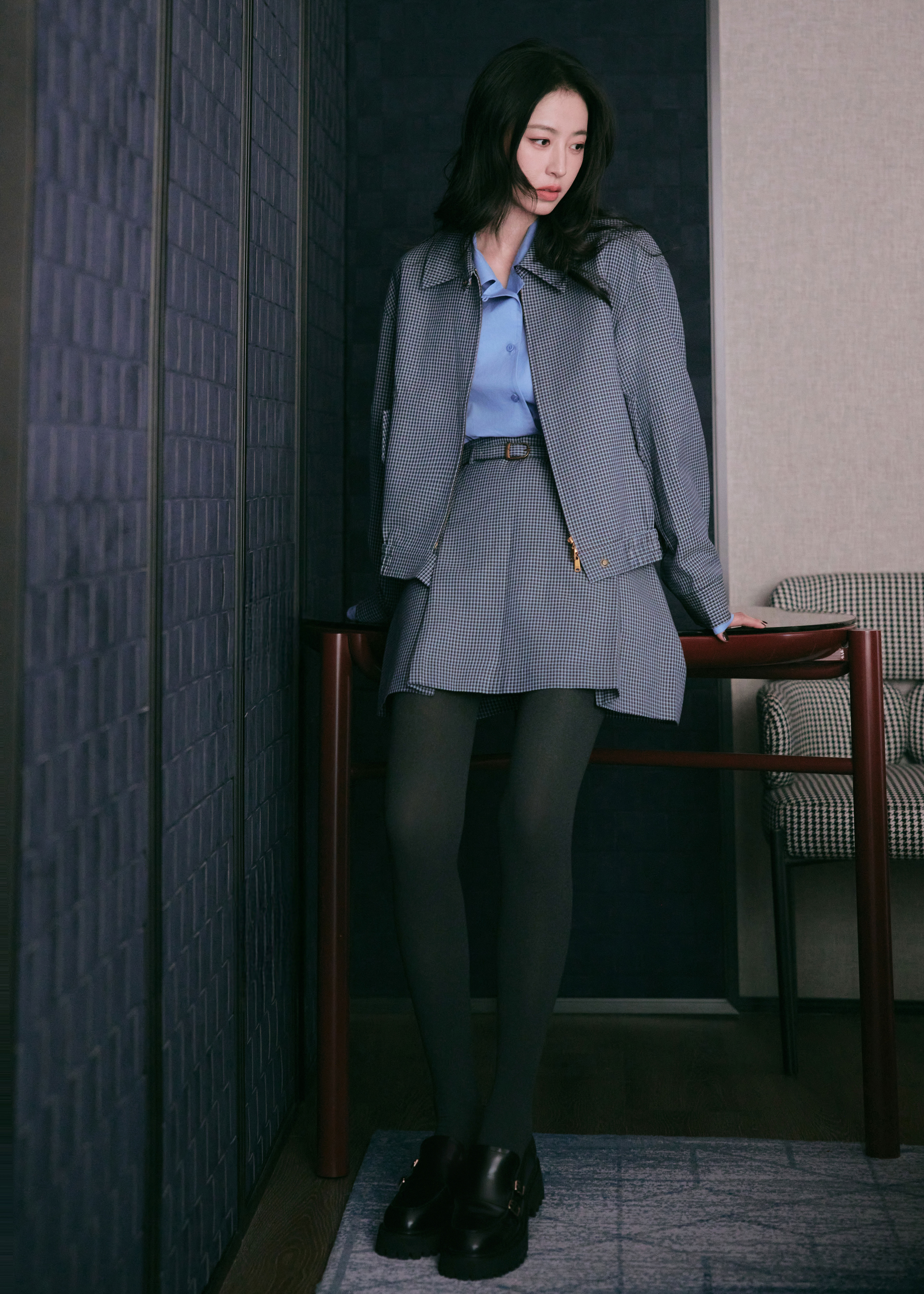 周雨彤 🖤 格纹外套搭配卡泽意袜