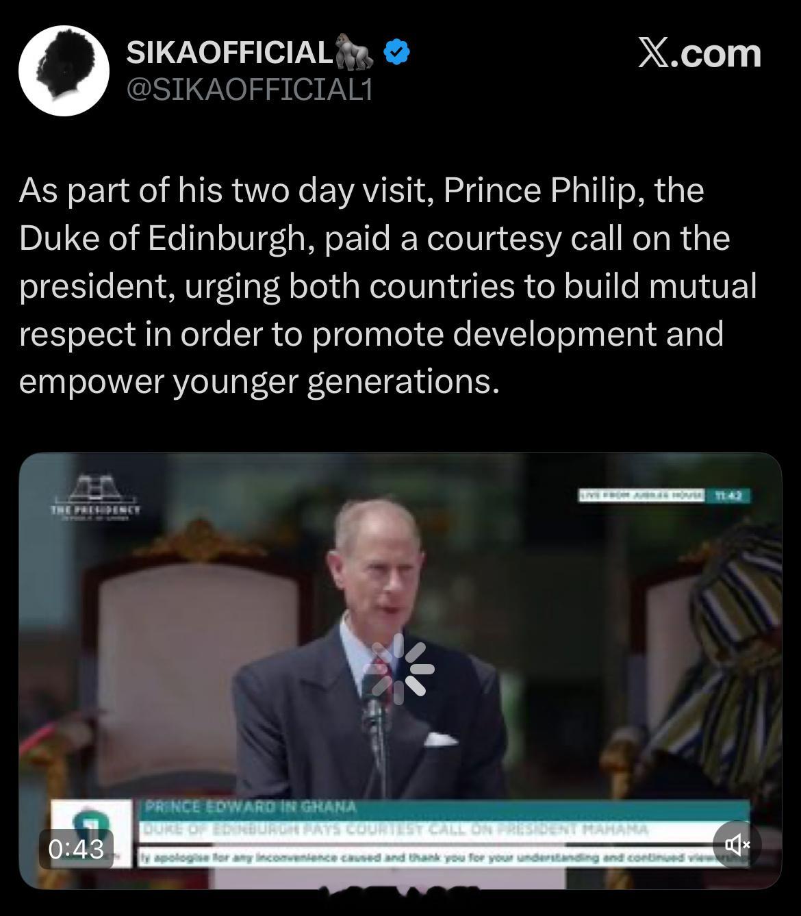 【世界真是个巨大的草台班子】加纳实在很不熟悉爱德华知道是爱丁堡公爵来了加纳,但爱德华被认成菲利普,还不止一个加纳媒体写错;知道爱德华有头衔,但把爱德华等级叫得和他哥一样高:His Royal Majesty。实际上他哥是His Majesty,🇯🇵德仁天皇叫His Imperial Majesty ,爱德华其实是His Royal Highness。哈哈哈哈哈哈哈,真是服了