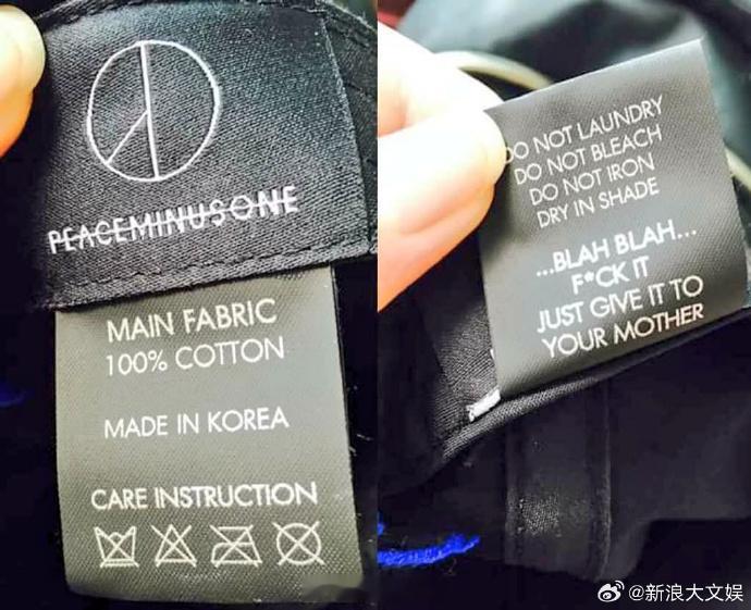 网友扒出权志龙此前品牌的衣标内容:“不要水洗、不要漂白、不要熨烫、阴干什么什么的