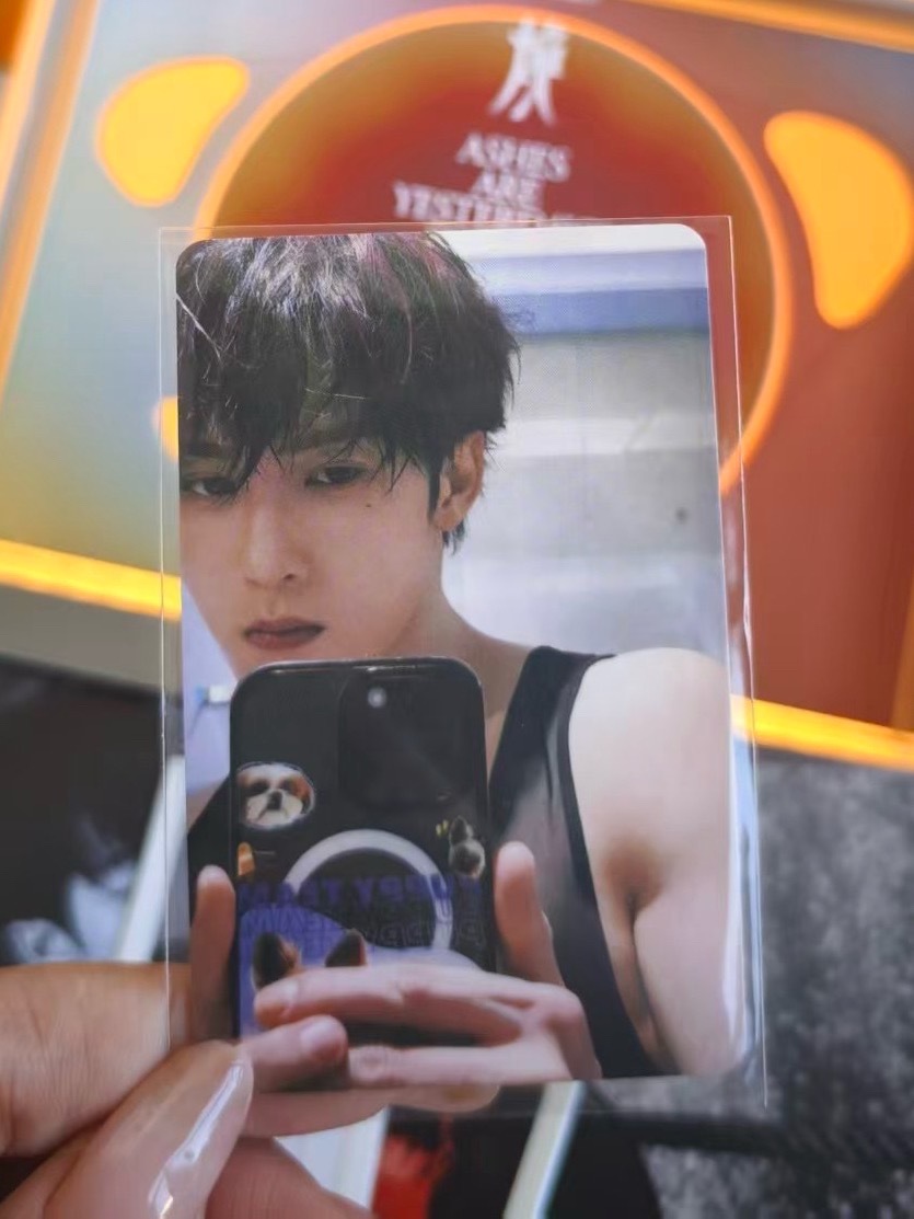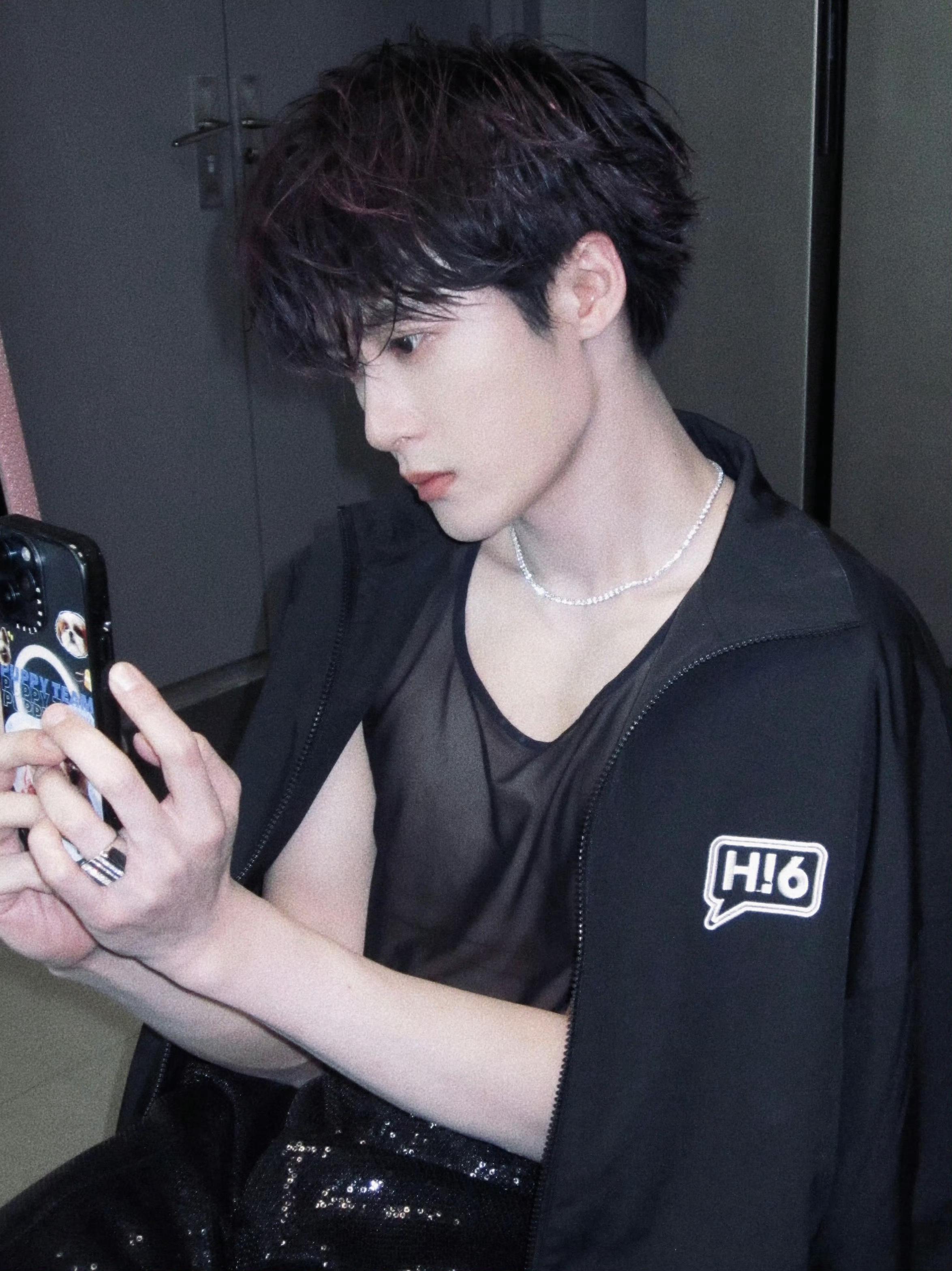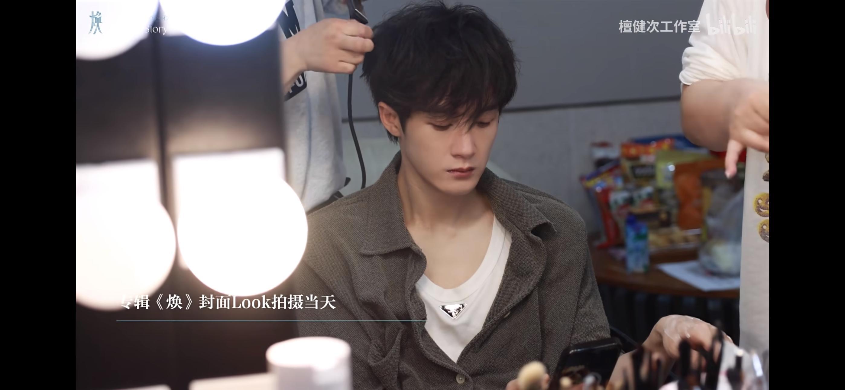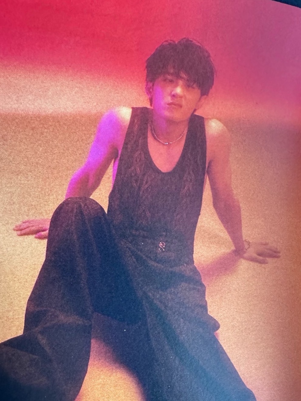 刚开始还以为这两张小卡是同一天拍的,后来看见背心上的花纹和头发不一样才知道不是同一天同一套,p1是24年跨年的时候拍的,p2和写真集里的图是同一天拍的,所以他在卡背上问我们是什么时候拍的,工作室发的视频上没有标时间,应该是24年4月或5月的封面LOOK拍摄?