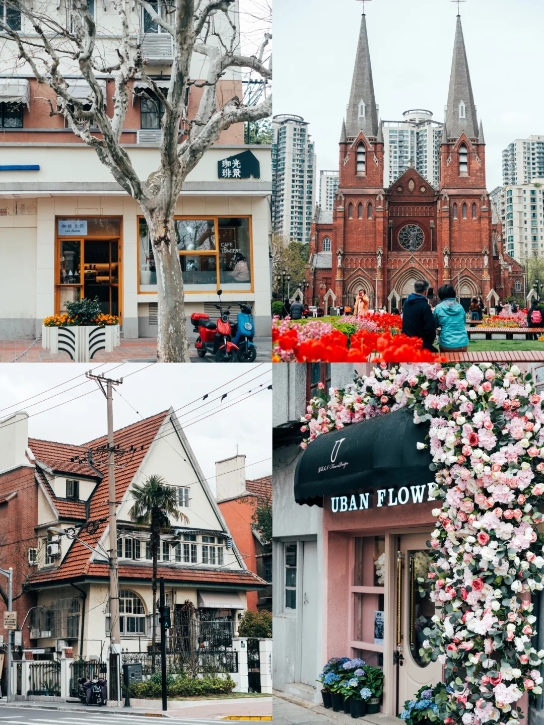 4⃣️愚园路:愚园路的主街上有很多潮流小店,还有网红咖啡店、甜品店,建议早上早点来走一走,人少又舒适。