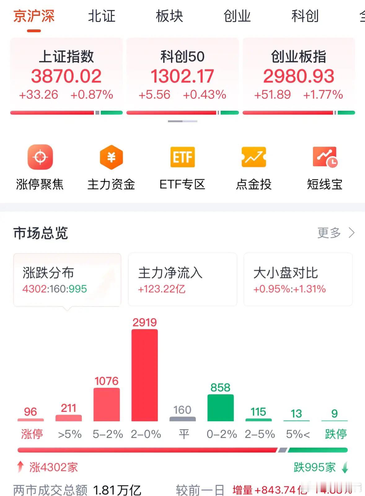 A股放量上涨成交量1.81万亿元,后续走势如何:11月25日收评,今天A股放量上涨,企稳反弹,上涨个股超4300只,复盘看,人工智能CPO和应用方向的游戏ETF领涨,这是长线资金的两个选择的方向。A股的散户很可怜,只有买到连续上涨的板块才赚钱,昨天上涨的军工和航天航空今天就大跌;银行上午也是下跌,所以散户在A股如果玩短线追涨杀跌,那百分百亏钱。整体看,今天1.8万亿元成交量,量能不够,明天大概率震荡调整,只有少数板块能够走出连续行情。散户赚钱了要及时收红包,切勿追涨杀跌,不然股市上涨跟你没关系,每天都亏钱。因为右侧交易了,赚钱不容易,控制好仓位和风险再赚钱。