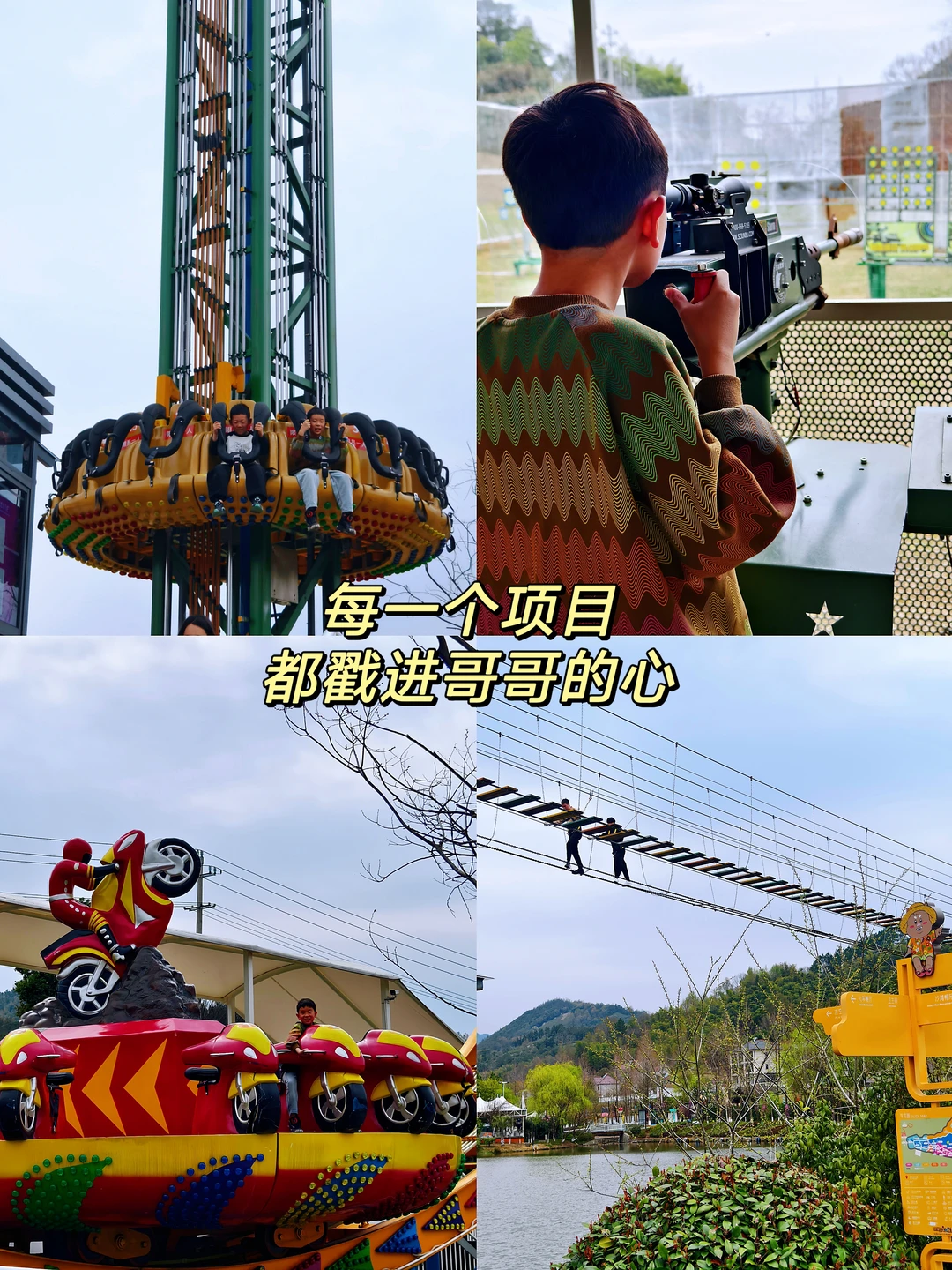 🌿去年暑假带娃来过,今年春天才发现这是江浙沪私藏的绿野仙踪啊!\n二刷安吉【荣耀天空之城】后,我宣布这里就是亲子游天花板!\n-\n💦必玩项目:\n🎢「云端漂流」:穿越竹海的玻璃滑道!3.88km全程尖叫,4岁+就能玩的刺ji体验\n🏖️「阳光沙滩」:万平白沙滩+湖面,假装在三亚\n🌈「彩虹天桥」:20米高空走天桥!勇气挑战\n🎡「云端摩天轮」:高空看日落!承包整个竹海的浪漫\n💦「水上乐园」:海盗滑梯+巨型水桶暴雨!熊孩子玩到不想走\n🐑「萌宠乐园」:羊驼、香猪、山羊、绵羊、驴…\n🎢「其他游乐设备」:大摆锤、跳楼机、无动力探险乐园…\n-\n✨隐藏玩法:\n🍃在漫山茶田教娃采明前茶\n🎋带萌娃挖春笋体验山野乐趣\n♨️泡着温泉数星星的梦幻夜晚\n-\n🚗交通指南:\n杭州1.5h直达丨上海/南京2.5h\n⏰营业:9:00-16:30(暑期有夜场)\n-\n🏡关于住宿:\n这次带娃住进山顶「天空之间」民宿\n✔️270°竹海景观房\n✔️悬崖无边泳池\n✔️私汤温泉\n✔️顶层星空观景台\n⚠️PS:上山要开20分钟盘山路!老司机专属体验\n-\n💰费用:\n民宿+乐园+温泉+漂流=人均300+\n-\n🌸春日限定文案:\n\"把娃扔进山野里\n才是春天蕞好的早教课\"\n\"和城市绝交24小时\n在竹海里找回童年滤镜\"\n-\n📸打卡tips:\n❶ 带防水手机套!漂流/戏水会湿身\n❷ 给娃多带套衣服+溯溪鞋\n❸ 傍晚5点摩天轮光线超出片\n❹ 民宿早餐的笋干肉丝面必吃!\n