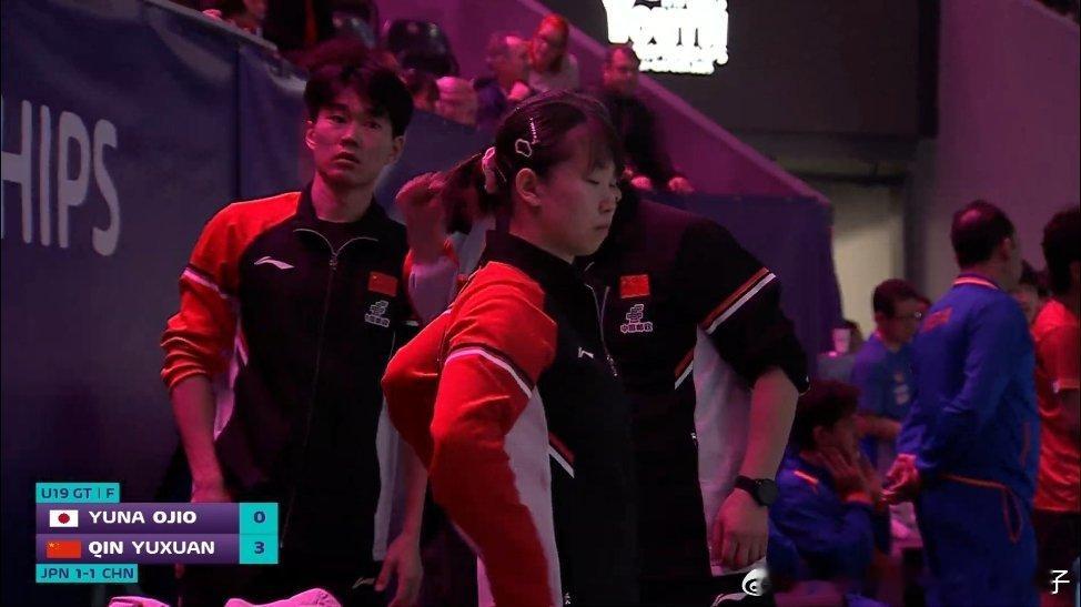 覃予萱3比0小塩悠菜(9,4,5)第三盘:姚睿轩VS高森爱央中国队一比一日本队2025年国际乒联世青赛U19女团决赛
