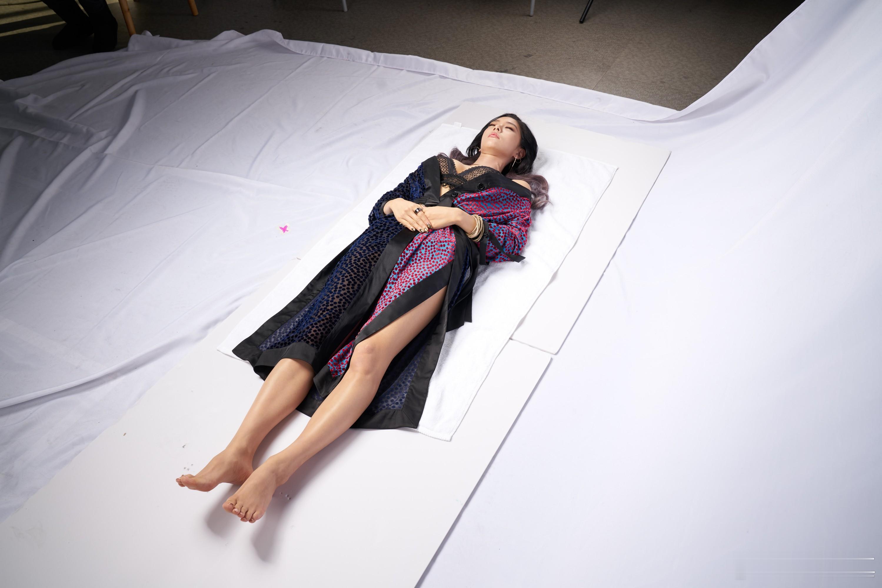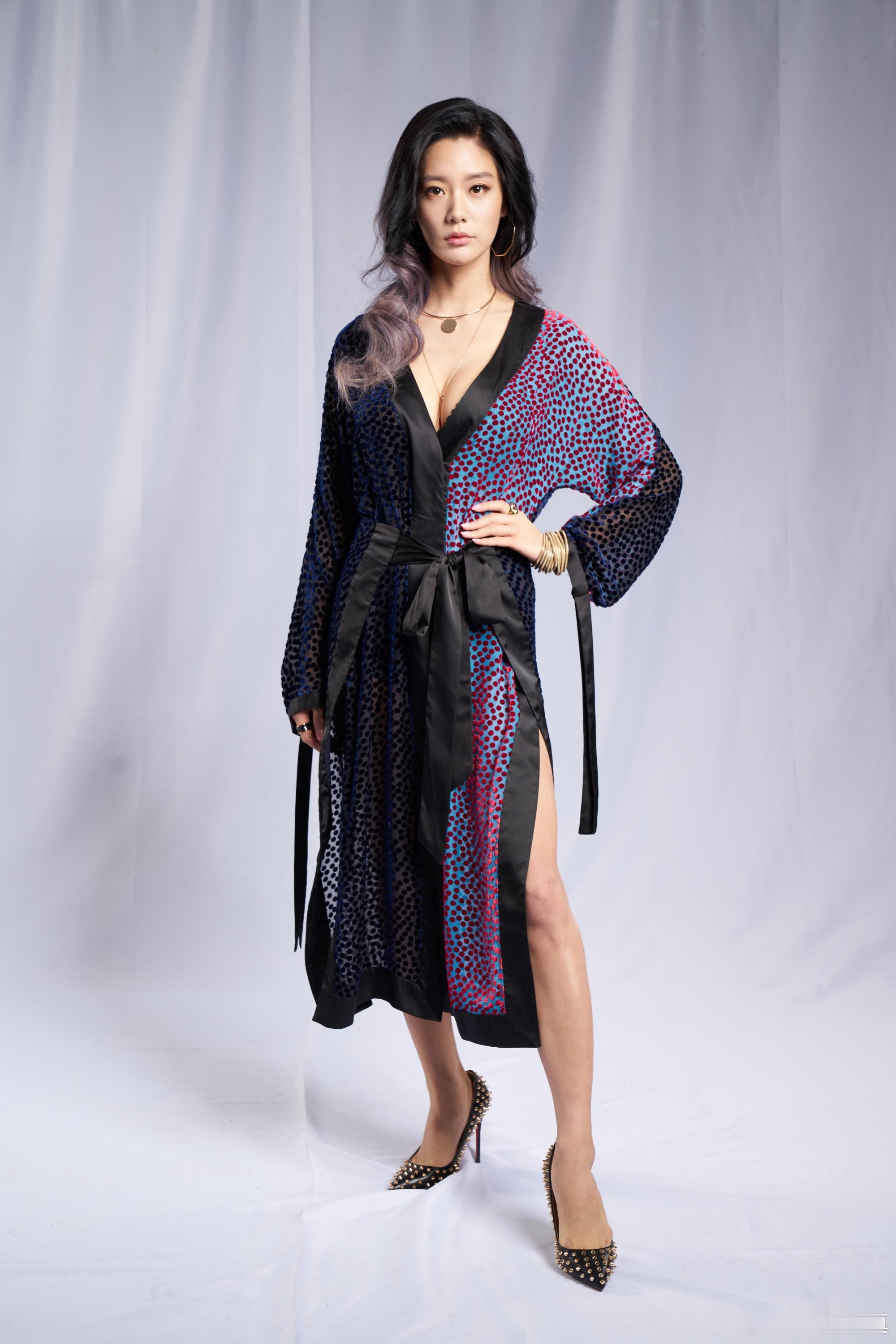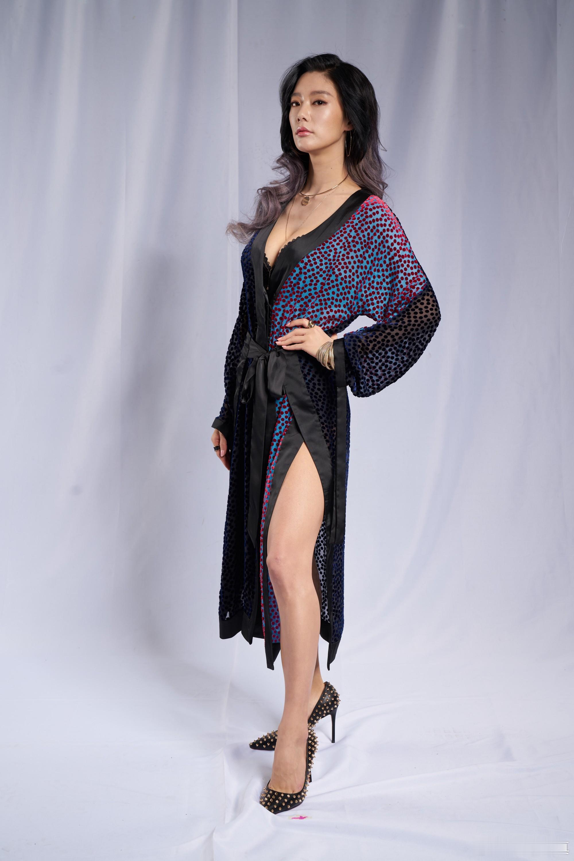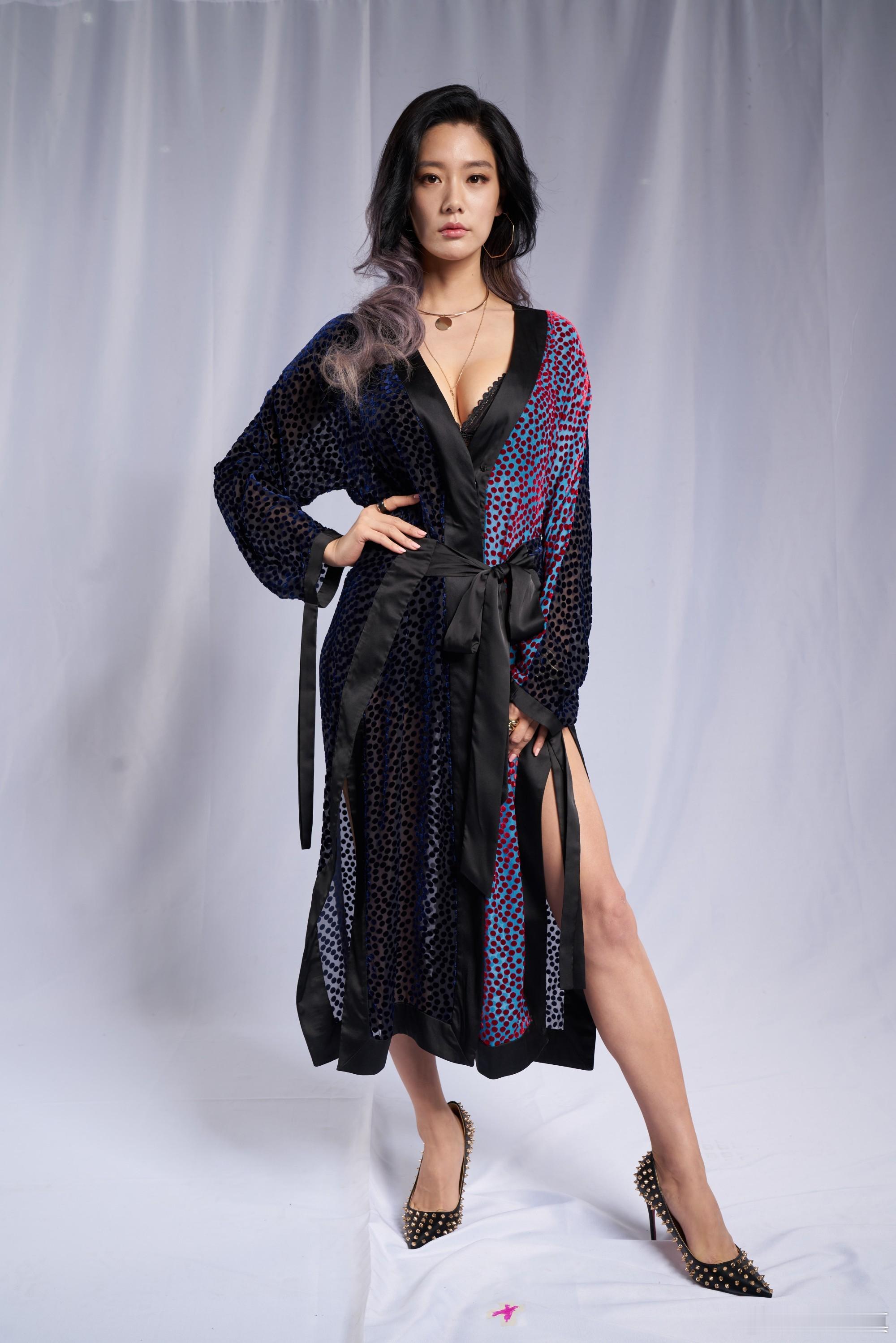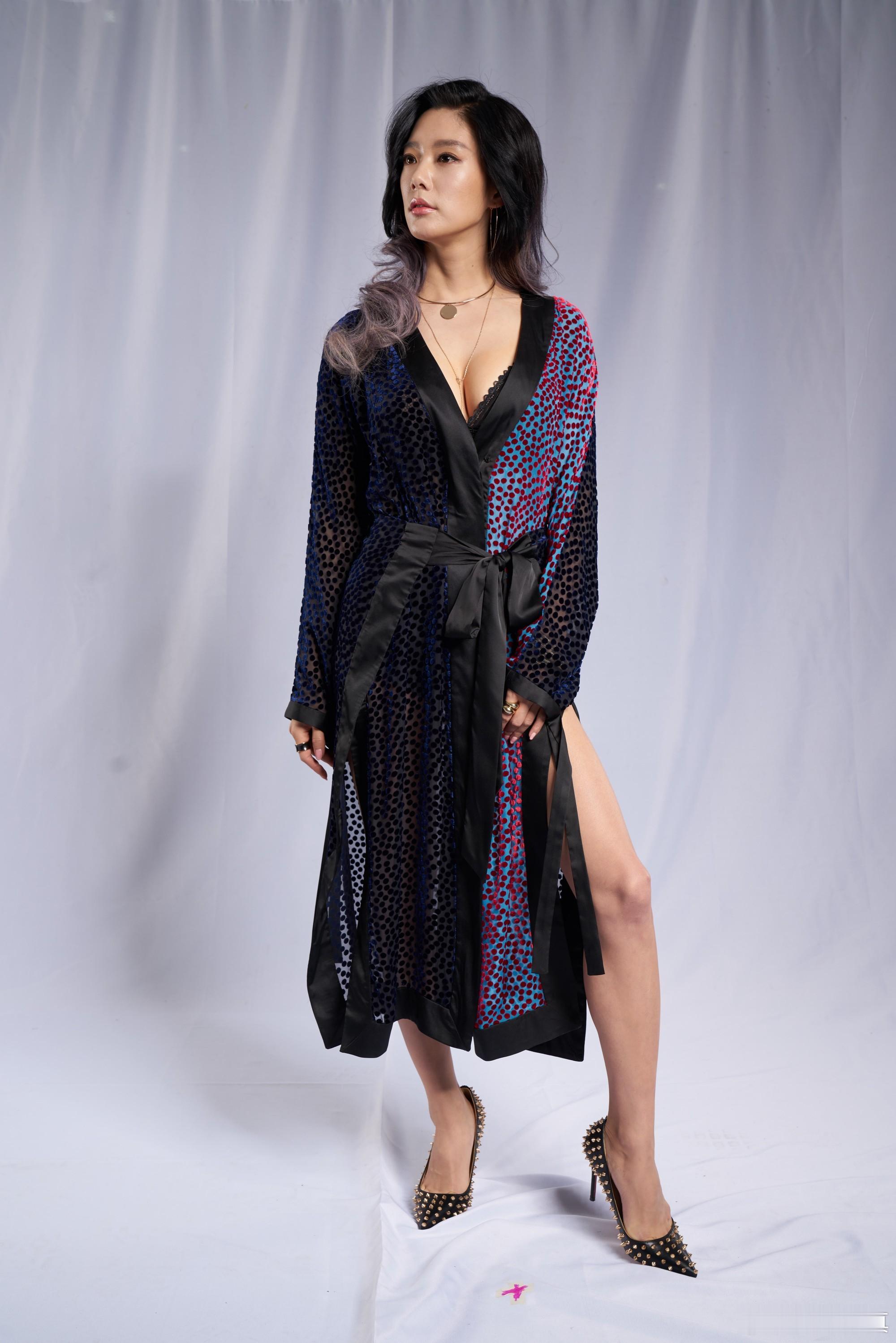 李成敏(克拉拉)棚拍生图黑色红蓝斑点睡袍(上)