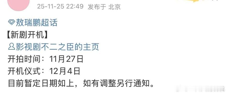 不二之臣还没开机?我以为早开了