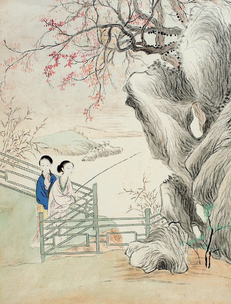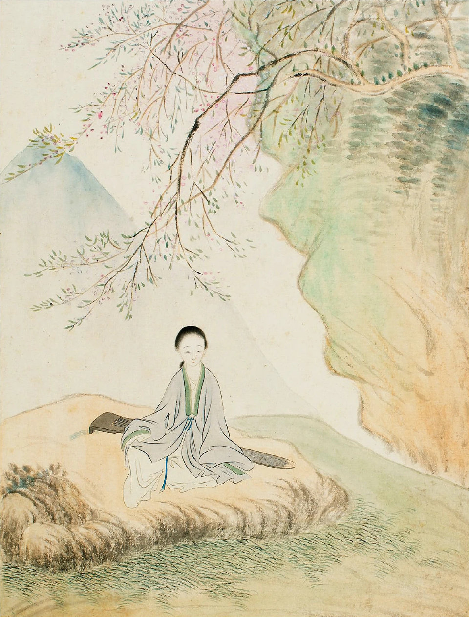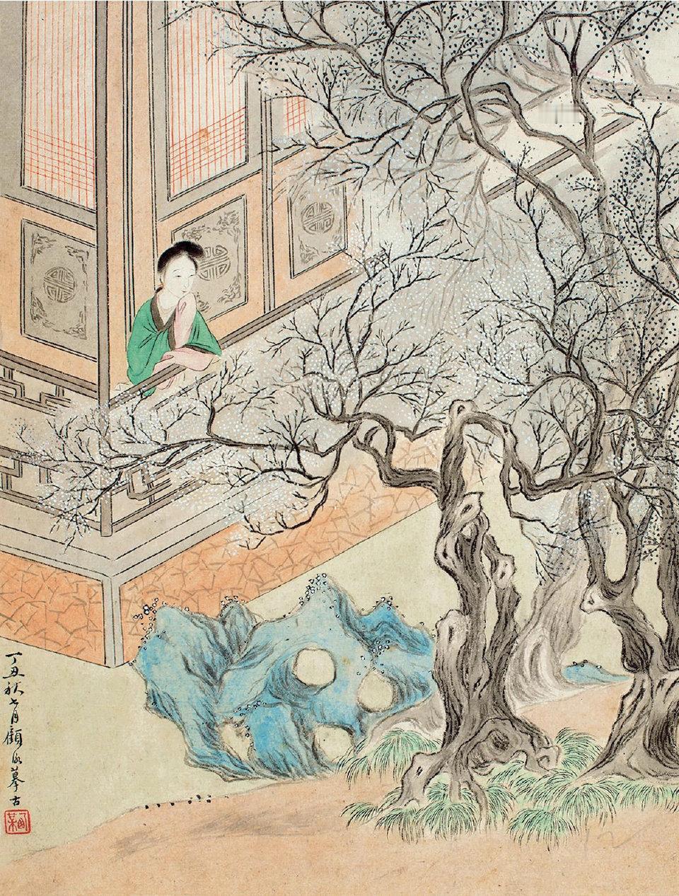 【顾洛 清 《春闺怡情图册》】顾洛的《春闺怡情图册》作于1817年,当时顾洛五十五岁,是其盛年精作,此册共计十二幅,每幅纵31厘米,横22.5厘米, 约0.6平尺。此册页写仕女各态,或梧影思诗,或梅边伤春,或书室临池,或灯前怀人,或柳畔纳凉,或月下弄箫,蕉影摇窗……。仕女皆淡妆素颜,却不失窈窕之态,妍丽之容,布景置陈,都灵动而逼真。功力之深,画品之妙,确非浪得虚名者。顾洛(1763—约1837)字西梅,号禹门,浙江钱塘(今杭州)人。擅书画。画工人物、山水、人物古雅,山水苍润;花卉、翎毛亦见生动。仕女工致妍丽,尤为著名。生平作画未尝重稿,亦未授一弟子。传世作品有《仿元人仕女图》、《抚琴图》、《美人春愁图》等。