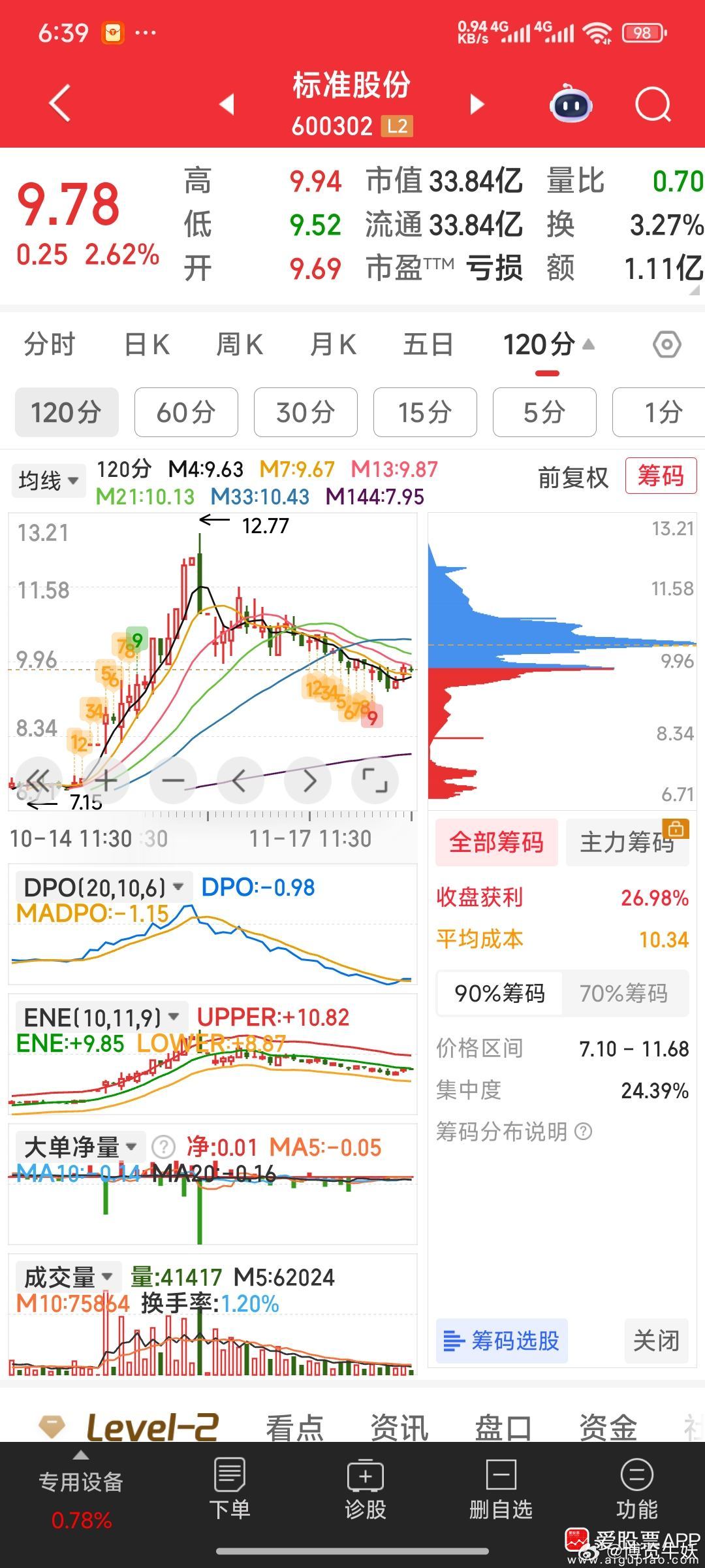 【手中4牛今日观点】手中4牛:标准股份,榕基软件,航天发展,福石控股。今天重点关注标准股份的启动拉升,从120分钟K线看,我认为标准股份己到启动拉升的节点了。榕基软件,航天发展,福石控股三票,强则留,不强可择机减仓。
