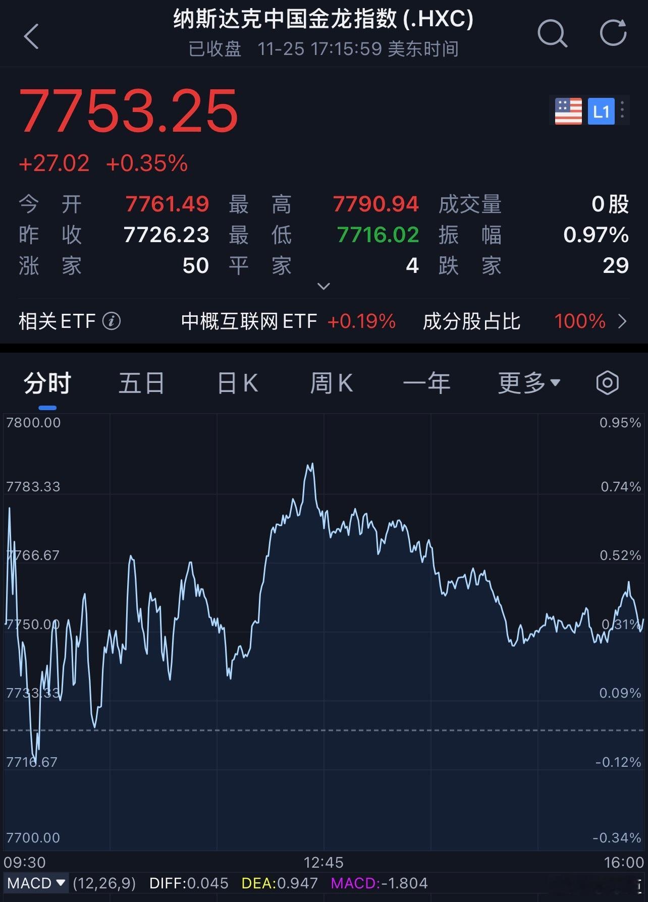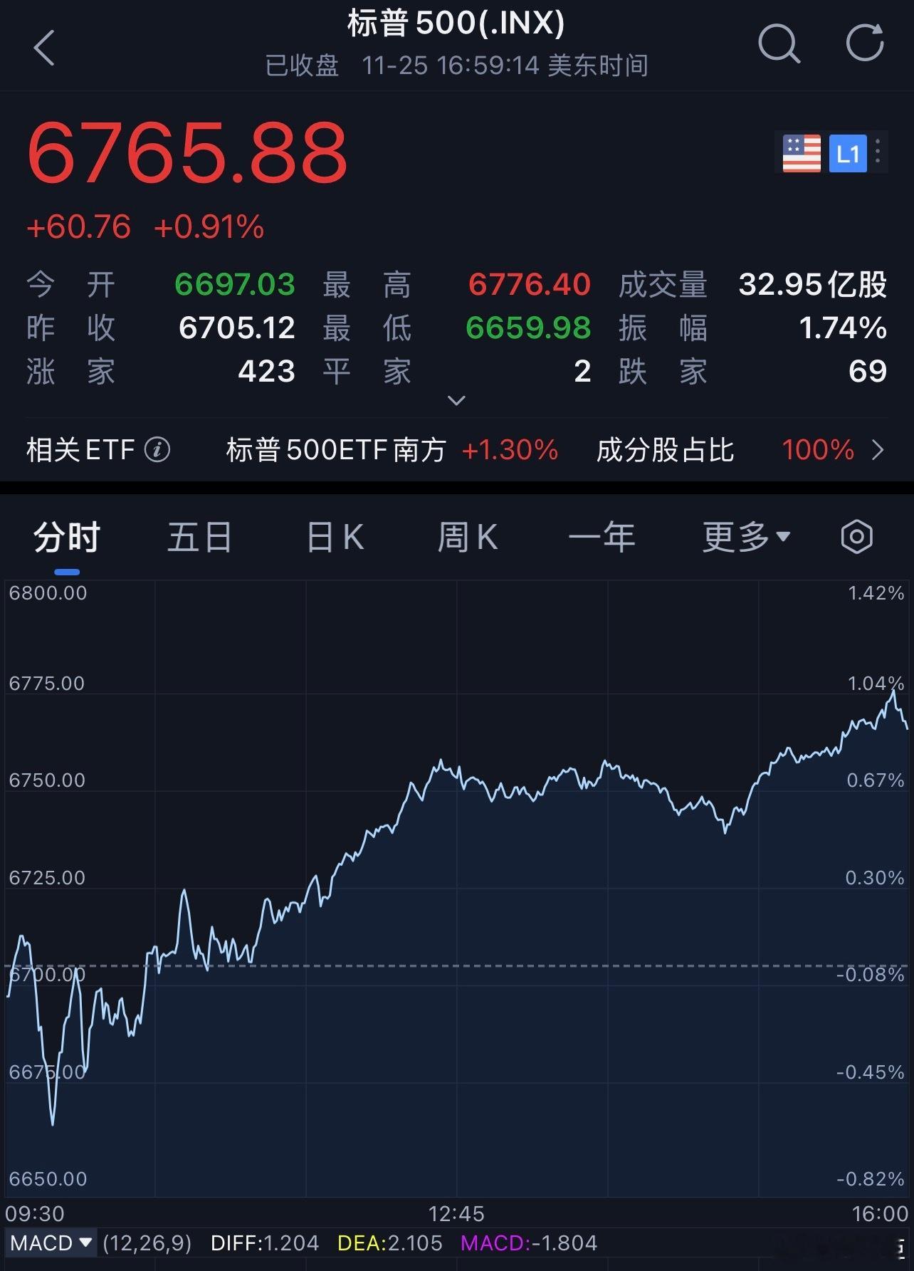 老板们早安,打卡养铁咯!据CME“美联储观察”:美联储12月降息25个基点的概率为84.9%,维持利率不变的概率为15.1%。美联储到明年1月累计降息25个基点的概率为66.4%,维持利率不变的概率为11.1%,累计降息50个基点的概率为22.6%。昨夜美股三大指数盘中持续走强,收盘时悉数上涨。截至收盘,纳斯达克综合指数涨0.67%,道琼斯指数涨1.43%,报47112.45点;标普500指数涨0.91%,报6765.88点。盘中,谷歌股价一度涨超3%,因有报道称Meta可能与谷歌达成协议,在数据中心使用谷歌的张量处理单元(TPU)。受此影响,芯片股一度走软,英伟达最大跌超7%。收盘时,谷歌A涨1.53%,谷歌C涨1.62%,均收于新高,市值达3.9万亿美元,逼近4万亿关口,英伟达收跌2.59%。中概股方面,纳斯达克中国金龙指数涨0.35%。国际金价走平。