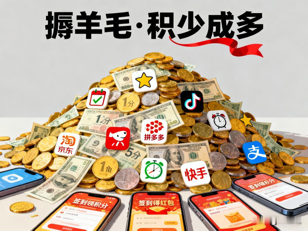 这羊毛薅得,我心里越来越不是滋味。 每天睁眼第一件事就是摸手机,几个APP挨个点开签到。看那几十秒的广告,就为了领那几分,几毛钱。跟上班打卡一样,一天都不落。 坐公交的时候,排队的时候,甚至上厕所的时候,手指头就在那儿划拉。广告弹出来,管你播什么,根本不过脑子,就等着那个“跳过”或者“关闭”的小叉叉。 你说我缺这几块钱吗?好像也不是。但就是有种说不清的劲儿在拽着我——不签吧,觉得亏得慌;签了吧,又觉得自己挺没出息的。为这点小钱,把零碎时间都搭进去了。 晚上躺床上想想,今天抢到的这点“福利”,真比我发呆放空一会儿,或者安安静静看页书值钱吗?好像又不是。 可能是,现在副业赚钱太难了,在家刷刷手机,就能捡到的钱,哪怕是一分钱,都觉得不捡就是亏。可这么捡来捡去,捡得自己一点儿空闲都没有了,心里反而更空了。 算了,不说了,明天继续薅羊毛。