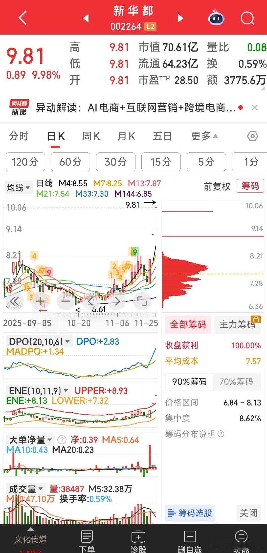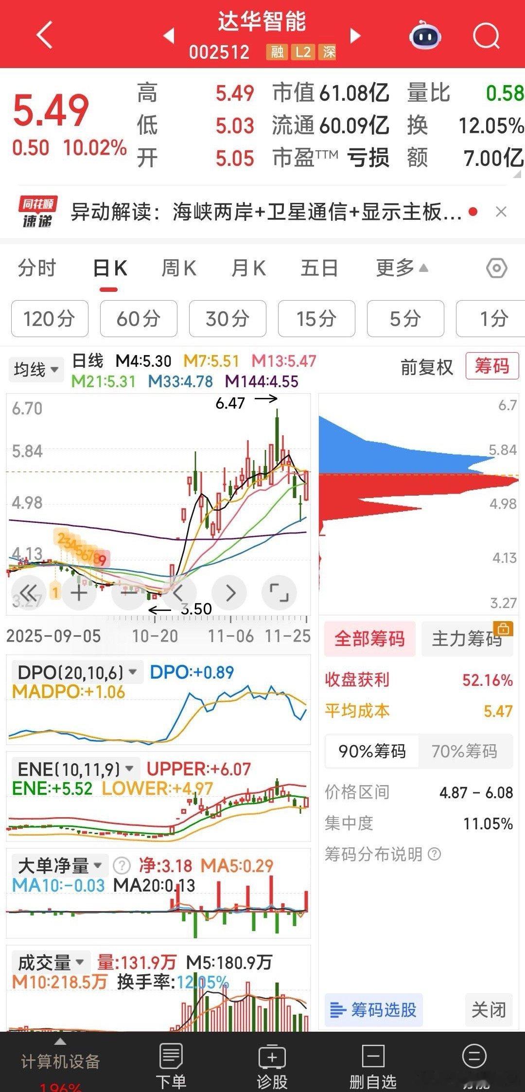 三选一,只选了开盘能进的达华智能。雷科防务和新华都没做。因没时间看盘,只能这样干