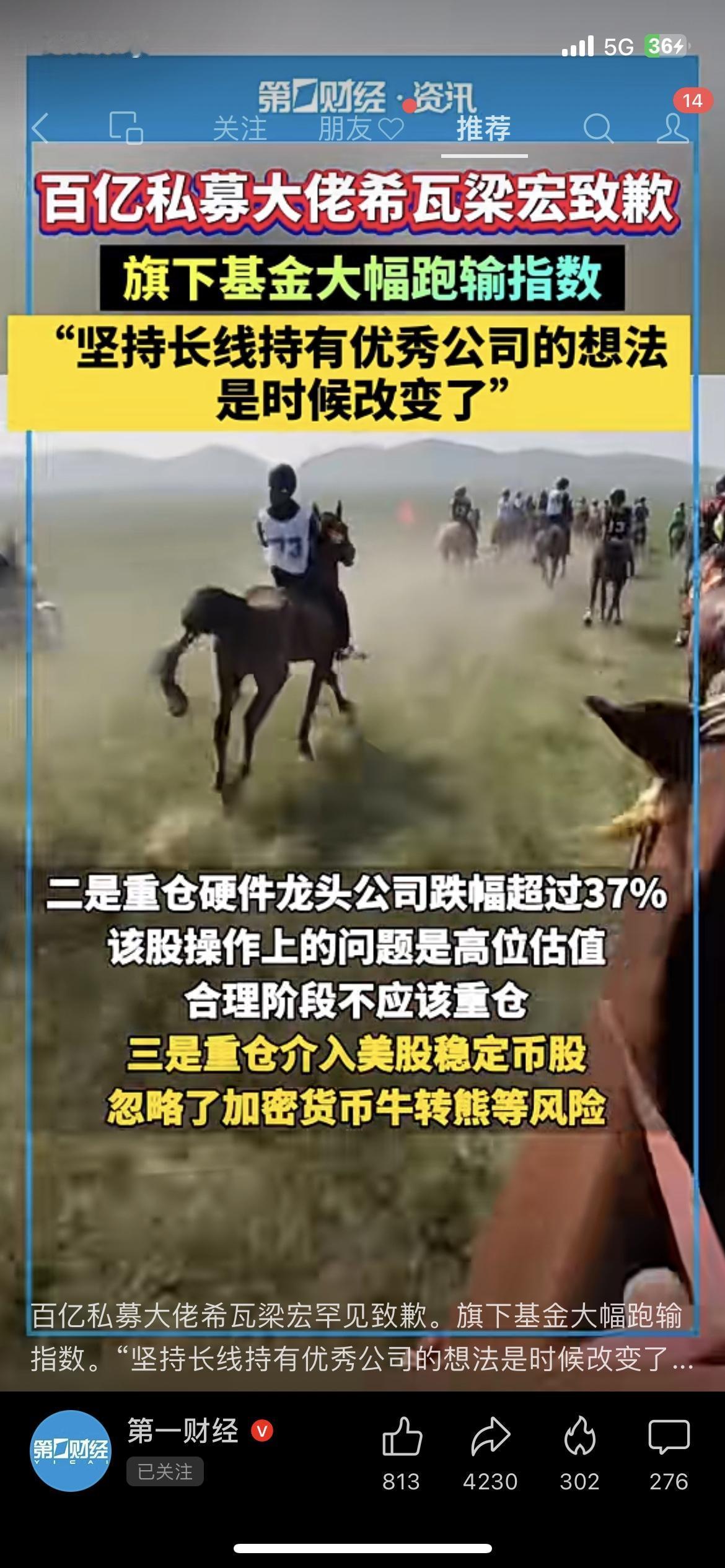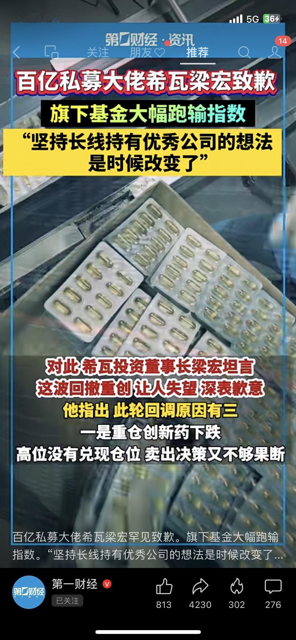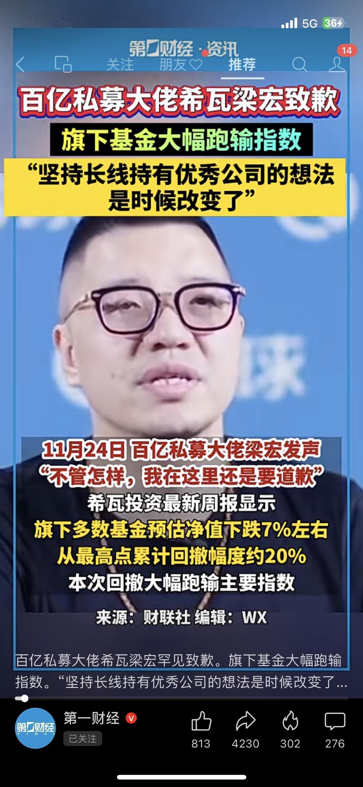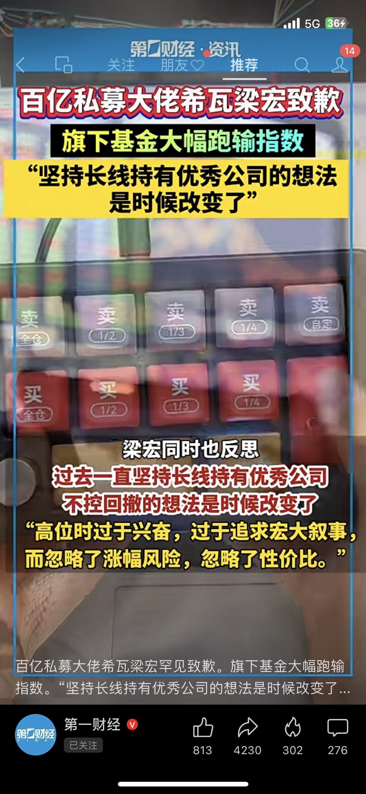 私募大佬梁宏道歉:投资翻车,该不该原谅? 最近私募圈出了个大新闻,希瓦的梁宏公开道歉了。原因是他管理的基金重仓某些股票,结果市场行情不好,亏得挺惨,很多投资人都急了。 梁宏站出来说,这次确实判断失误,对不起大家,也承诺会调整策略,争取把损失补回来。其实做投资本来就有风险,谁也不是神,大佬也有看走眼的时候。 但话说回来,投资人把钱交给你,就是信任你的能力。这次道歉态度挺诚恳,也算是负责任的表现。大家觉得,这种情况下应该给他一次机会吗?你会继续信任他吗?