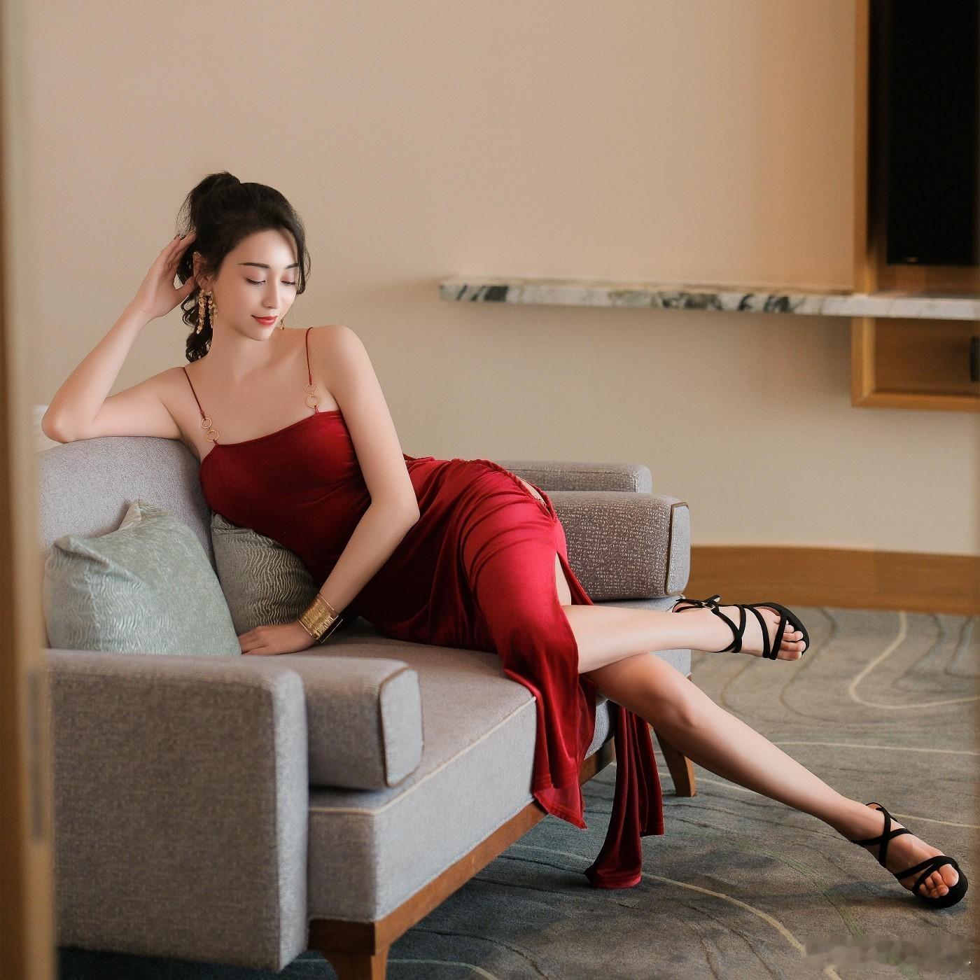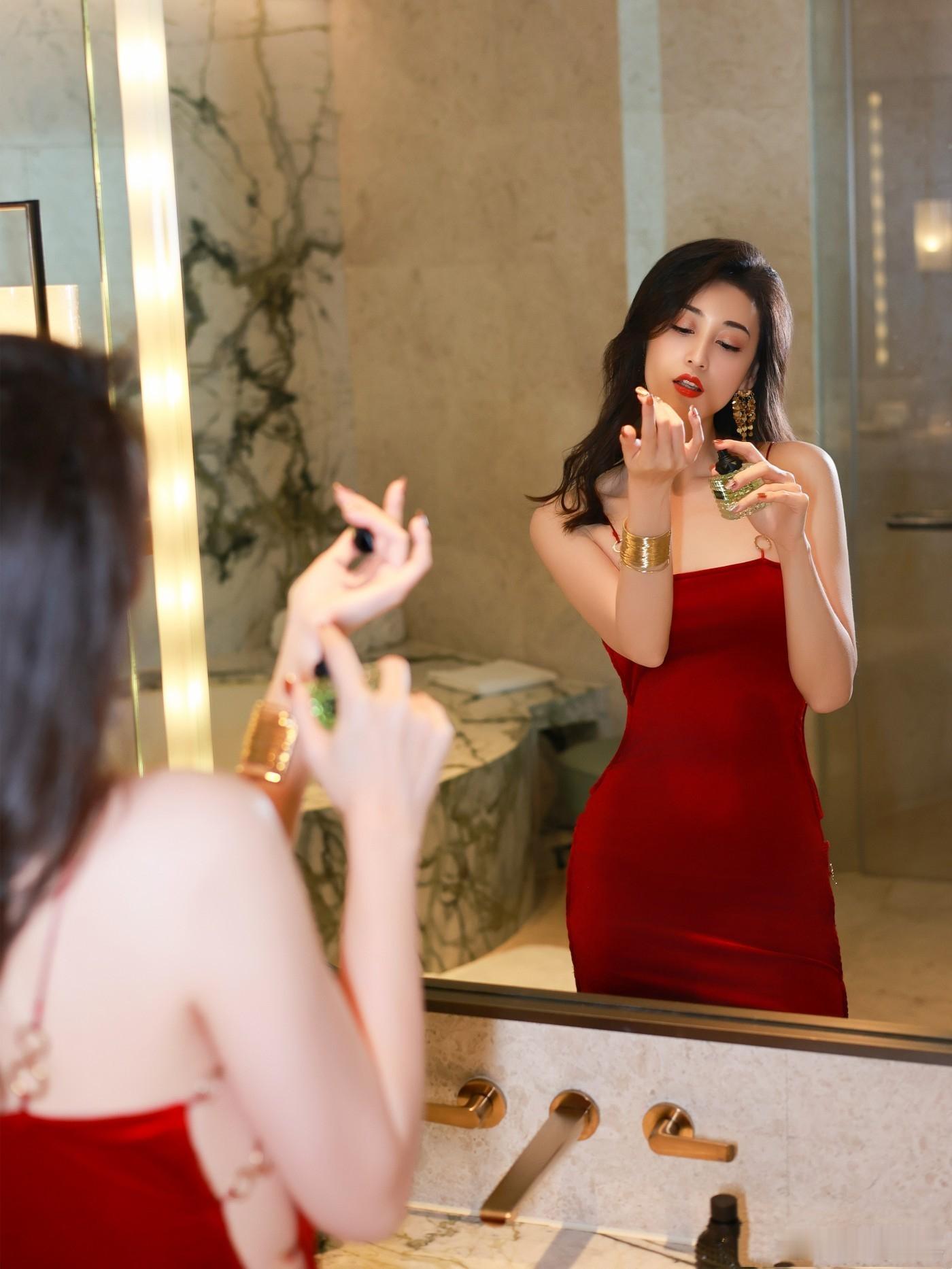 环球小姐区域赛冠军谭乔尹红色吊带长裙