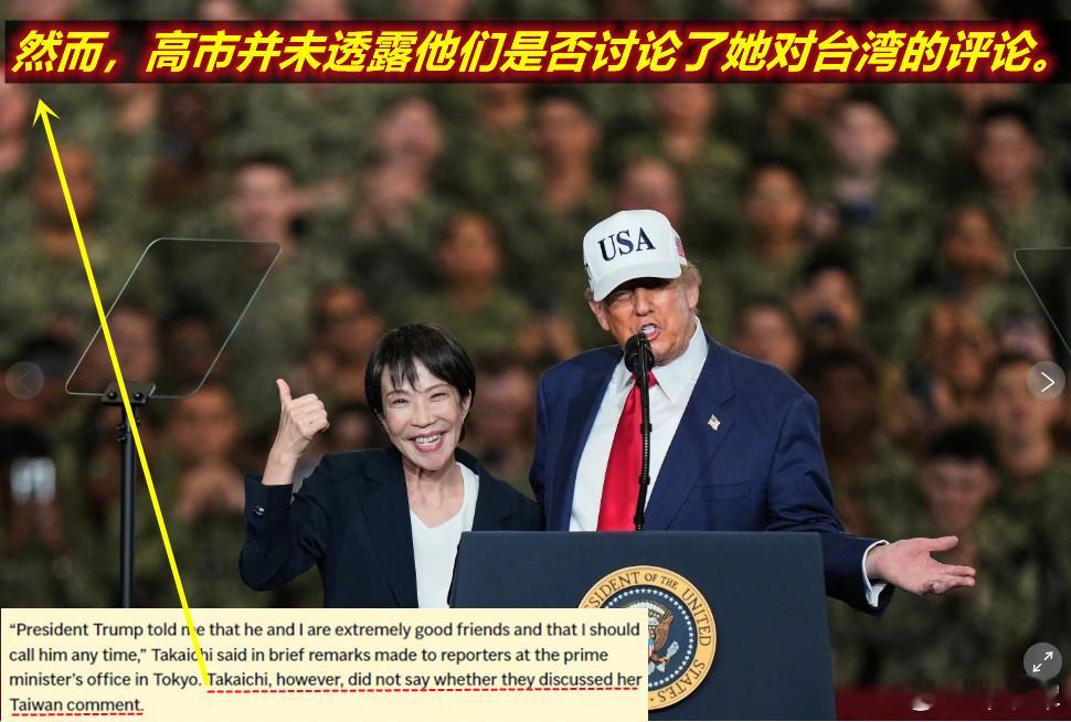 图1:朋友问:高市拒绝透露特朗普就其“口吐狂言”说了啥,是否告诉她“武力保台”这事儿只能默默滴做、而不能公开说呢?图2/3:我说:也有这种可能。因为在日防卫大臣视察与那国岛军事部署前不久的11月18日,美陆战队成立不久的第12滨海团刚结束了在与那国岛进行的后装演习。去年,该团在演习中还把AN/TPS-80防空雷达运上了与那国岛。