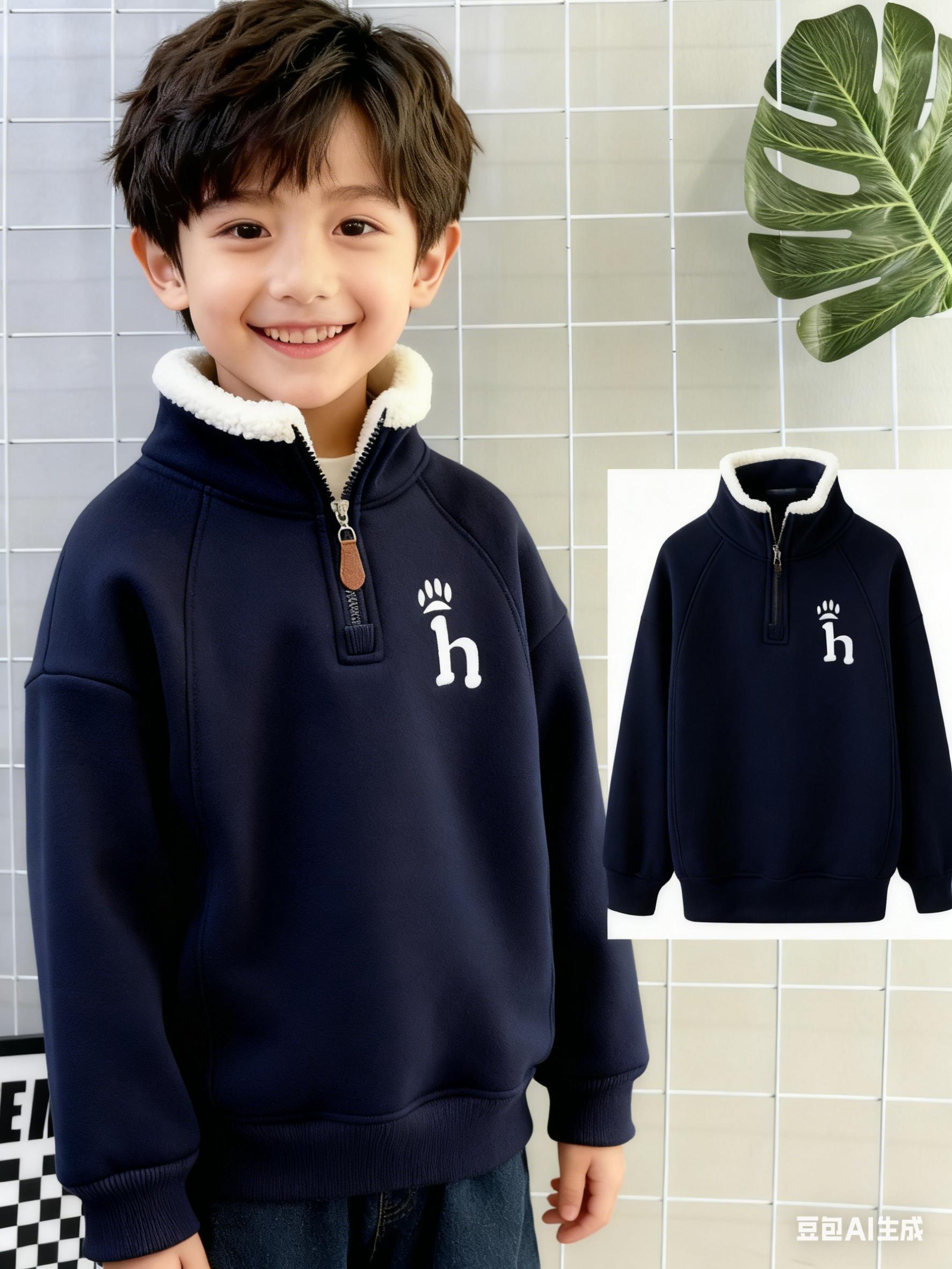 赶紧趁大降温之前,,还好我提前给儿子备上了这件加绒加厚卫衣,它是立领的...
