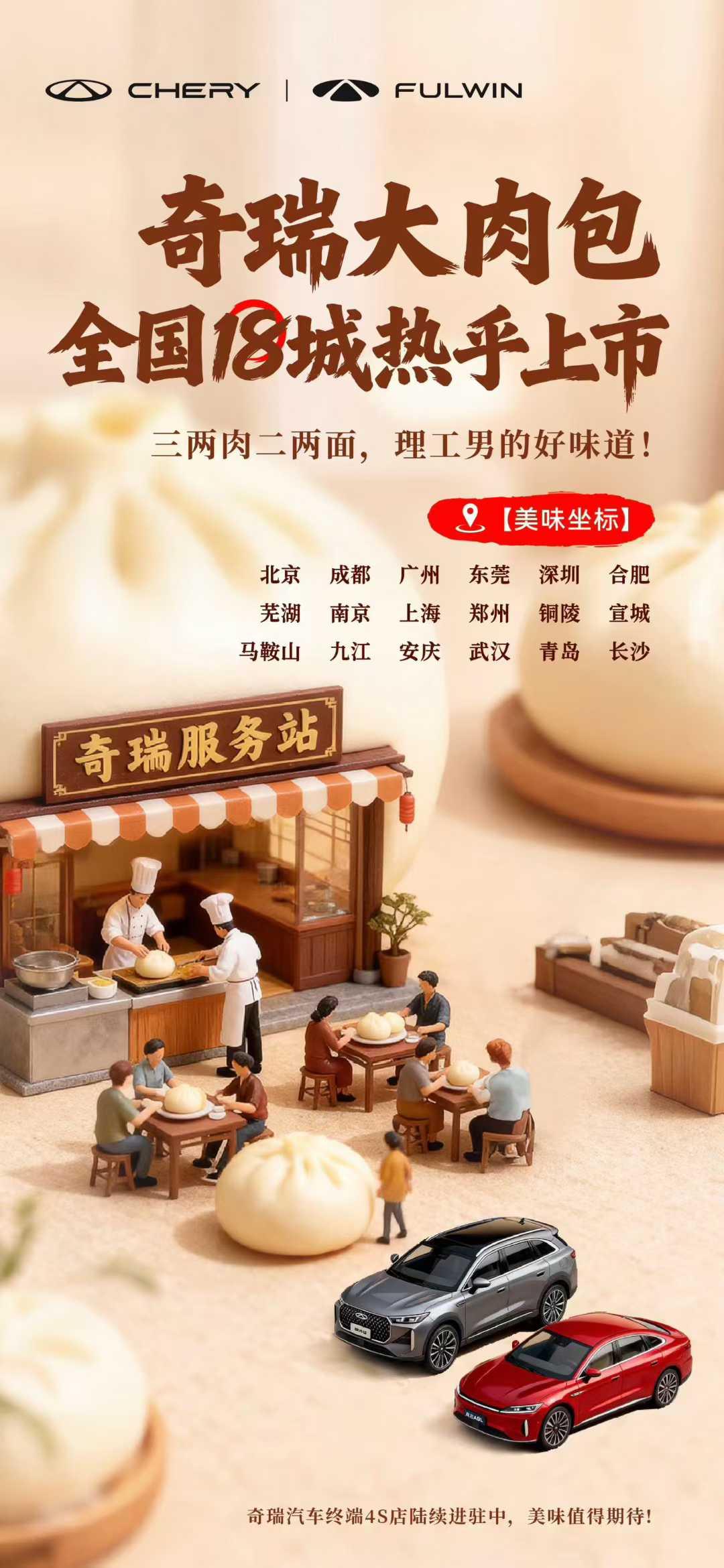 全国18城热乎上市 三两肉二两面,理工男的好味道! 奇瑞汽车终端4S店陆续进驻中,美味值得期待!