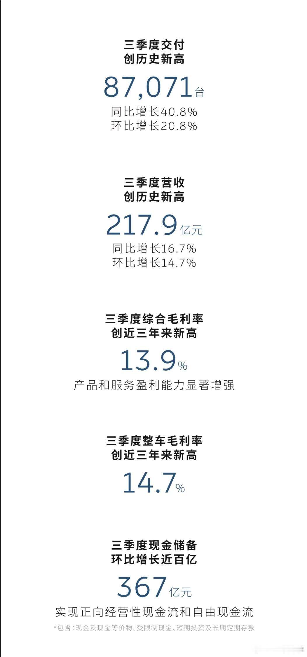 蔚来发布了第三季度的财报:交付、营收、综合毛利都创了新高,现金储备环比增长了仅百亿。今年乐道L90,全新的ES8两张大牌一打,精神气都不一样了,蔚来越来越未来了,是不。蔚来2025年三季度财报