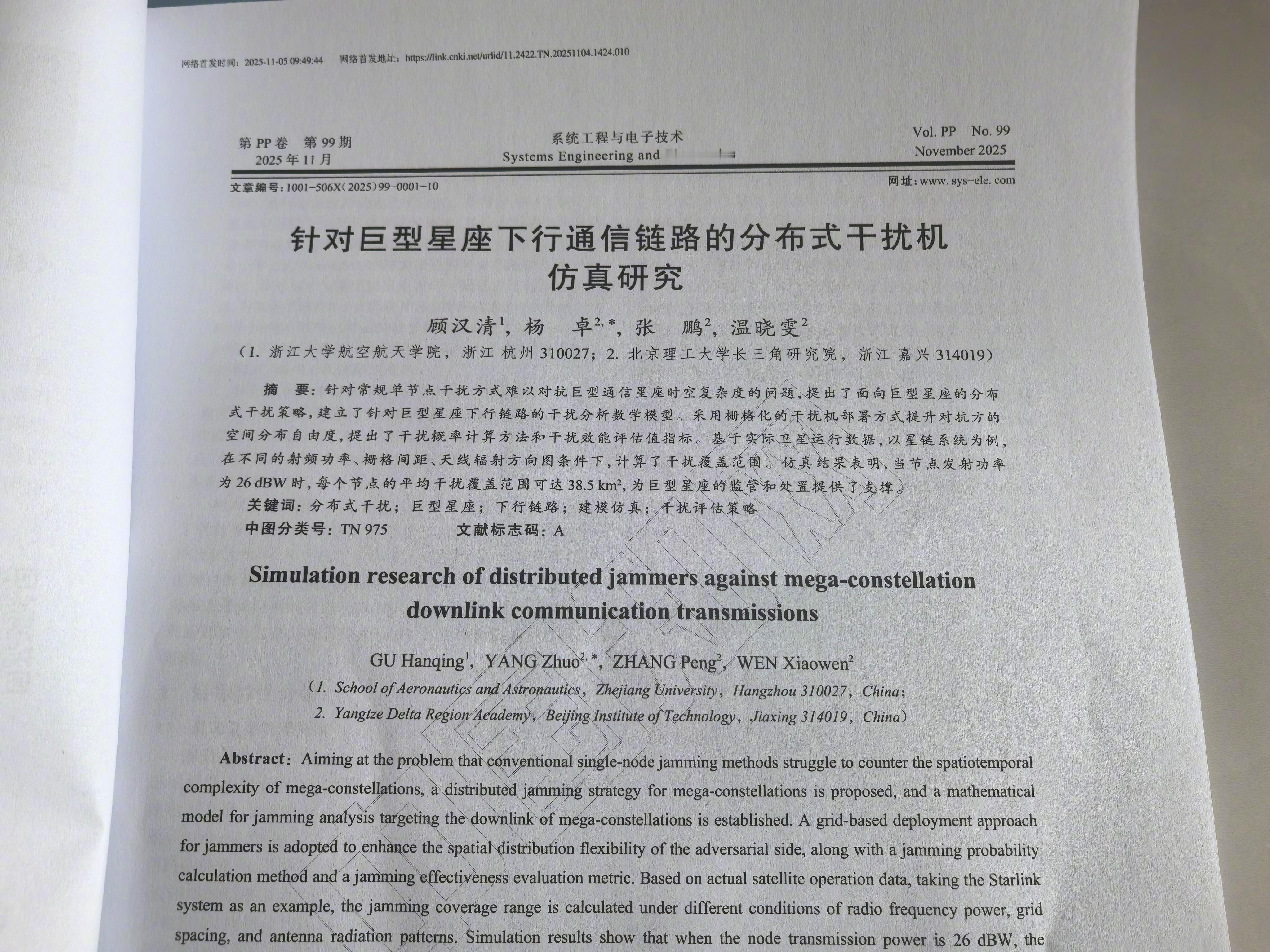 有军事大V引用《南华早报》报道,称中国研究团队模拟对马斯克星链的大规模电子战。我发现其中的说法存在很多硬伤,甚至根本就不成立,遂去找了原文进行查证。这篇论文的题目是《针对巨型星座下行通信链路的分布式干扰机仿真研究》,刚刚发布的,小编动作倒是很快。这篇文章就是个常规的电子对抗仿真研究,并无台湾岛背景。为什么文中出现干扰全岛需要1000多架无人机的数据?这是小编根据论文中干扰机所能干扰的面积,去除台湾岛的总面积,自行得出的一个结论。论文称干扰无人机应该部署在距离地面20公里的高空,形成棋盘格状的分布式干扰。这是论文作者根据干扰功率、平面等效功率密度、干信比等参数计算的结果,但并不适合夺取台湾岛背景。道理非常简单,要在台湾岛上空布设如此密集的无人机,必须要取得完全制空权和制海权,这时候已经胜利了,还干扰个屁啊。我不禁想起一个笑话,有个人卖耗子药,被人投诉不管用,他怼买家:你抓住耗子把药塞到它嘴里,你看它死不死。对星链的描述也存在许多错误,例如星链并不具备不断变轨的功能,星链采用的是霍尔效应发动机,推力仅为0.04牛,维持轨道都非常困难,哪里来的变轨能力?阅读科技文献是需要专业功底的,小编并不具备这个能力,但又想搞个大新闻。