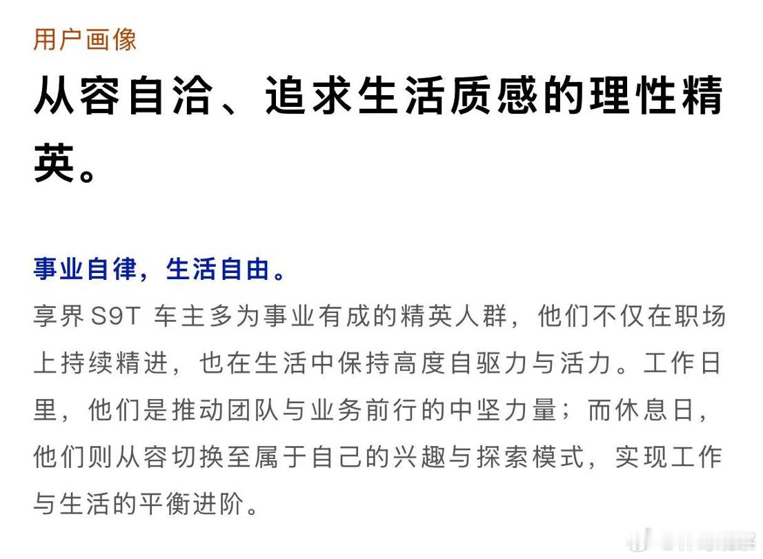 什么人在买旅行车 是谁在买旅行车?答案可能和你想的不一样!过去总觉得旅行车是小众玩家的玩具,但现在,它成了很多年轻家庭的“第一选择”。30~45岁的家庭用户成了主力,他们周末要带孩子露营,后备箱得塞下帐篷、自行车;平时通勤又要好开好停,轿车和SUV的优缺点,在旅行车上找到了平衡点。作为首款旅行车,它把轿车舒适、SUV大空间和黑科技全焊死在一辆车里——全球首个S级通信证书+华为HiFin系统,让地库刷抖音、荒野开视频会、翻车秒连120成为基操!配置直接拉满!全系标配空气悬架+CDC连续可变阻尼减振器,搭载最新华为ADS 4.0智能驾驶系统,配备192线激光雷达和36个高精度传感器,实现全国都能开的智能驾驶体验。 别人还在比座椅加热,它已经用“永不失联”的通信实力重新定义旗舰。9系巅峰力作不是口号,是地库信号满格、出库秒回网、侧翻不断连的硬核实力!大家越来越愿意为情绪价值买单 享界S9T的爆火就是个例子:车主平均年龄仅34岁,比BBA用户年轻一截,多数人原本是豪华品牌车主,换车时却为它的大空间、高颜值和华为智驾买单!余承东曾透露,享界S9T首批车主的净推荐值(NPS)已超过85%。这说明一件事:年轻人不再为品牌光环付费,他们只要“适合自己生活的车”。旅行车的春天,背后其实是生活方式的改变,能装下孩子的童年,也能放下远方,这才是新一代的“刚需”。
