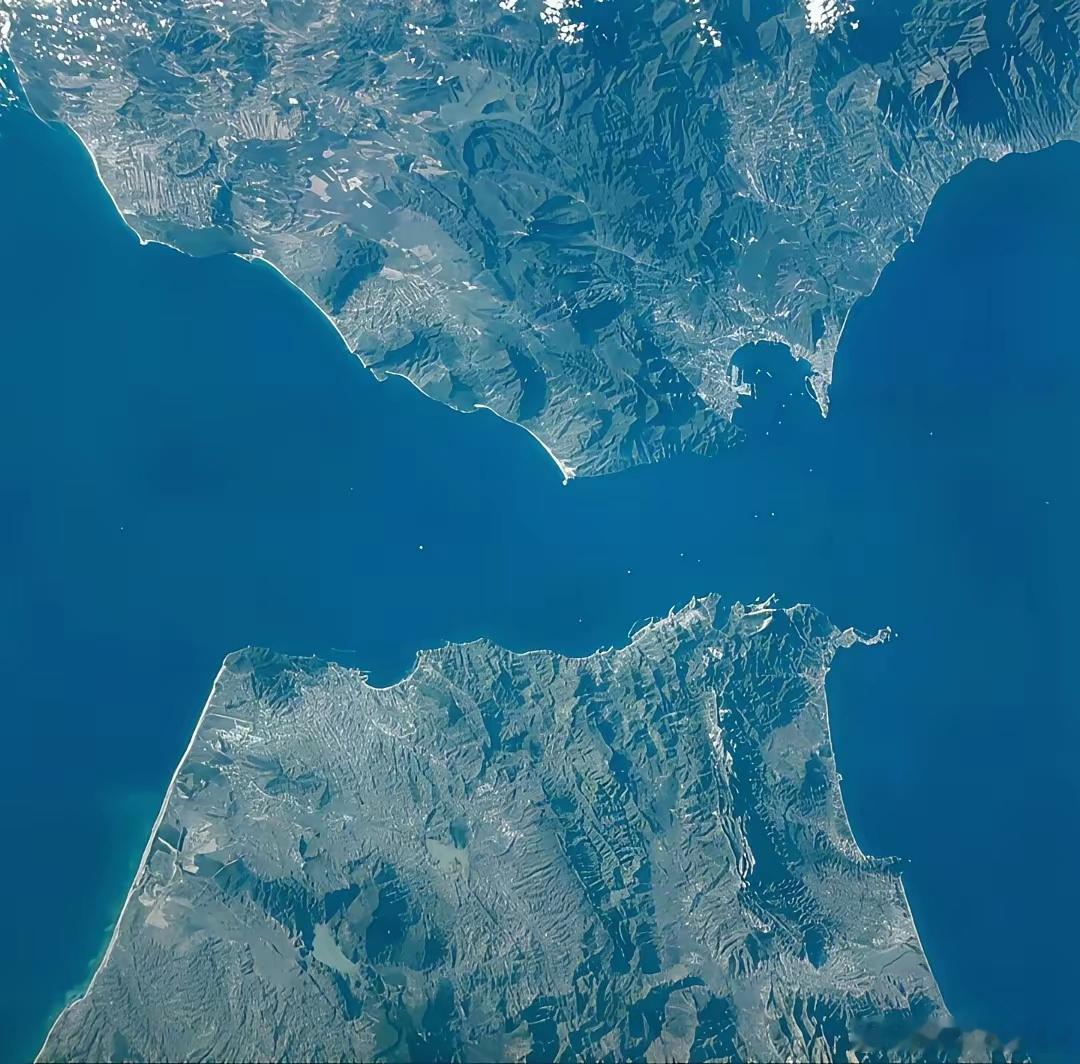 直布罗陀海峡,英国在西班牙唯一的殖民地,也是地中海与大西洋唯一的通道,海峡两岸陆地的最近距离只有14km,海峡最深处达到900m。这里不修建桥梁或者隧道原因也很简单:地质条件恶劣(地震频发),工程造价高,且也没大量货运需求,属于投资回报率几乎没有的项目;另外,如果修了,非洲的非法移民进入欧洲又多了一条通道,欧洲人可不傻。