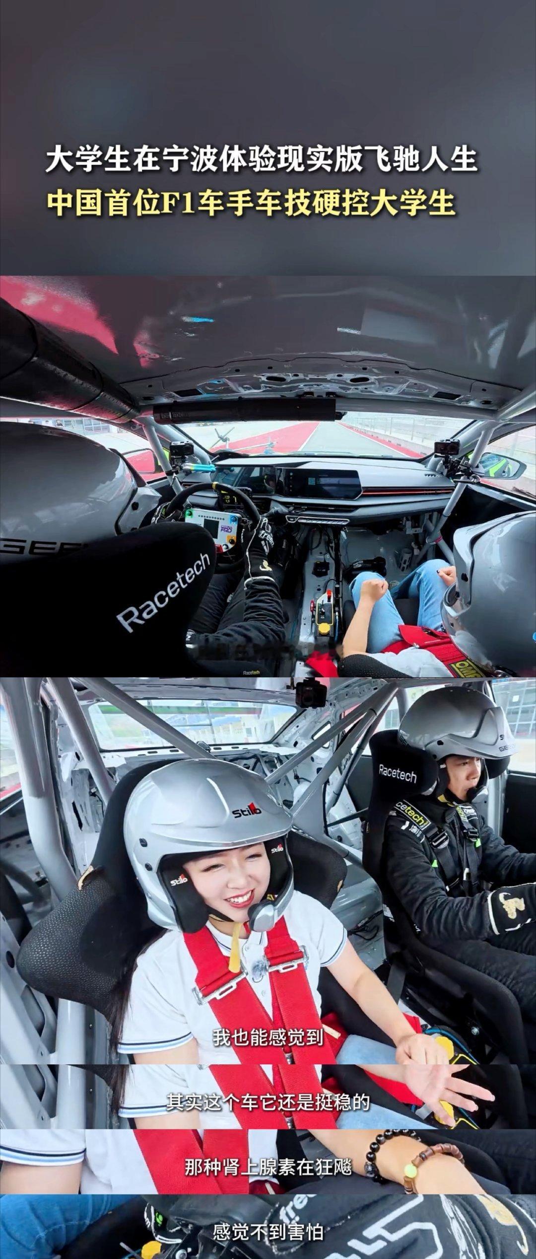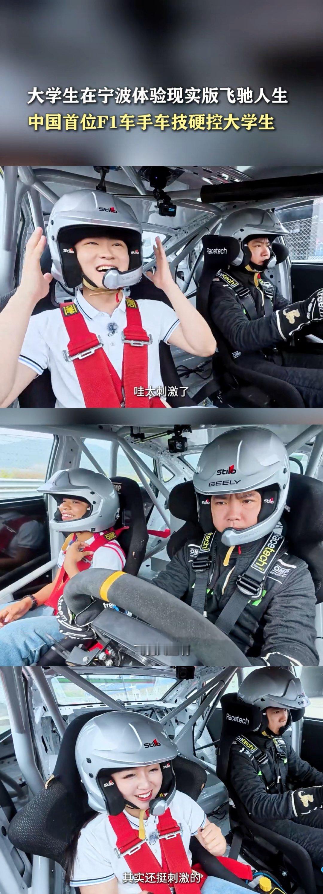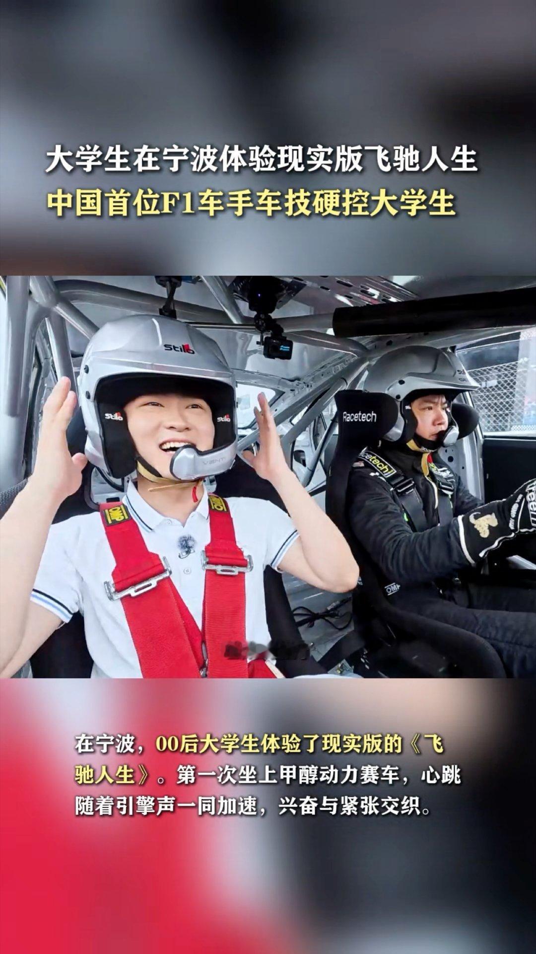 大学生在宁波体验现实版飞驰人生 赛道上的风驰电掣+前辈对后辈的用心指导,每一次加速都藏着热爱与期许,暖心又励志~中国首位F1车手车技硬控大学生