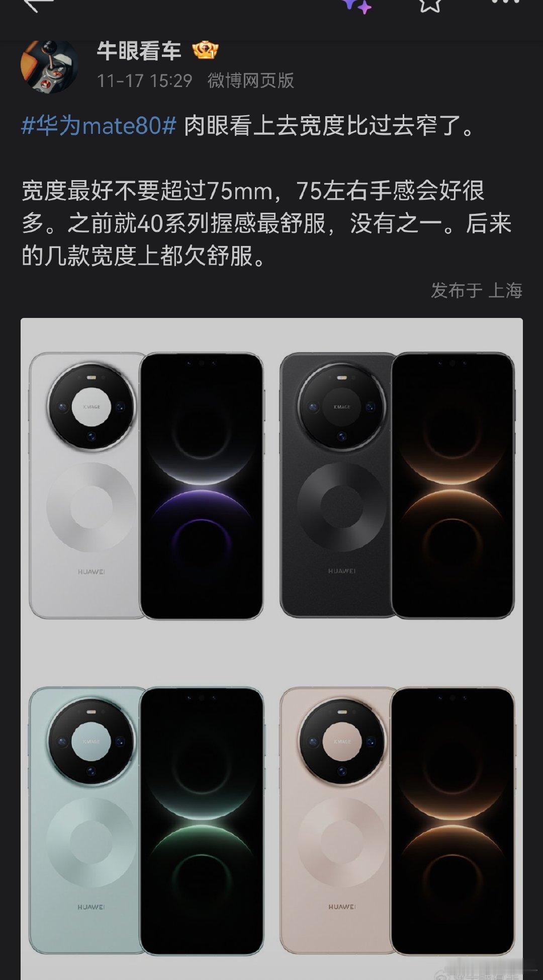 华为mate80 宽度做到了76,比70系列好非常多了。(非pro max)