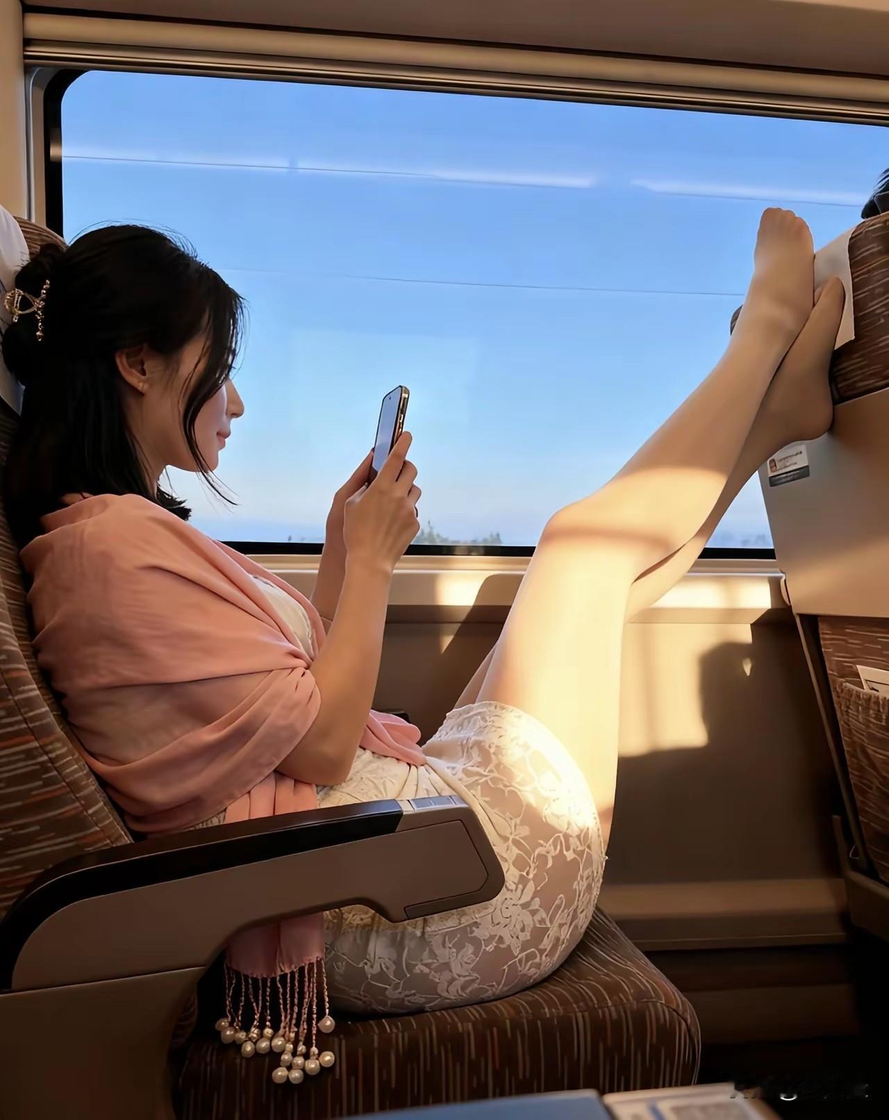 美女把火车睡出了酒店的感觉[呲牙笑]