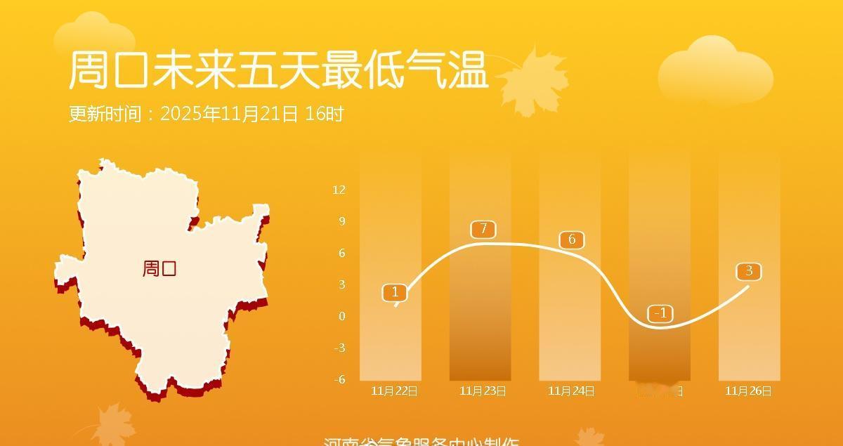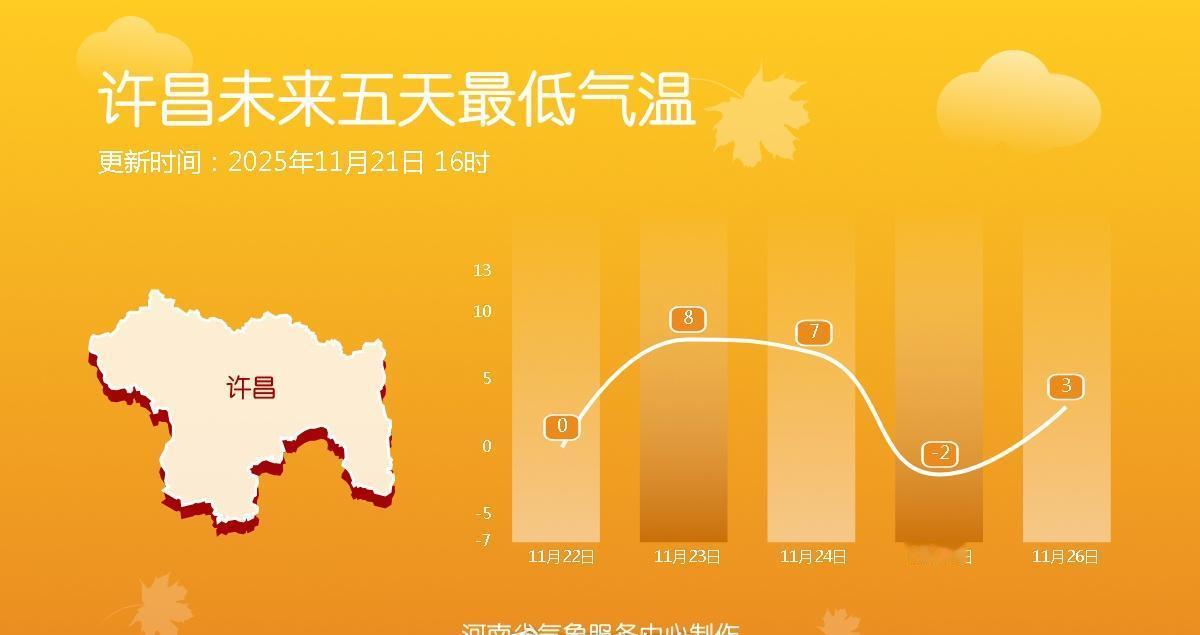 未来三天河南大部最低气温多在5~8℃之间波动,下周初受冷空气影响,多地气温将再度跌破冰点。