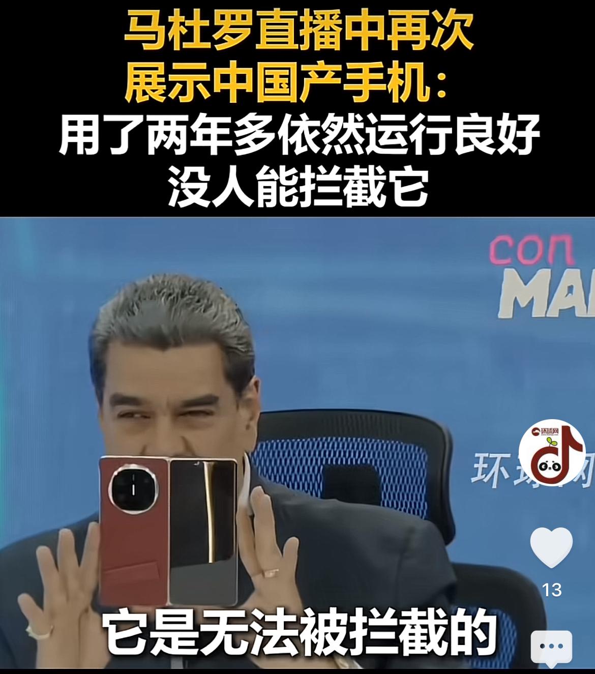 近日,委内瑞拉总统马杜罗在参与媒体直播时,满脸兴奋地展示自己的华为手机:“我用这部手机已经两年了,它简直无可挑剔,中国华为实在太优秀了!没人能够拦截它的信号,美国人使尽浑身解数也破解不了!” 借助通讯信号、手机后门等方式,对其他国家高层实施定位与监听,向来是美国人的拿手好戏!马杜罗这一行为,堪称最强的“带货主播”!