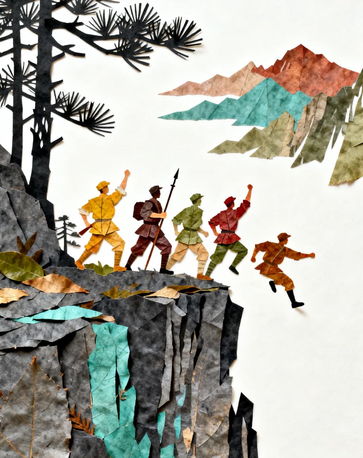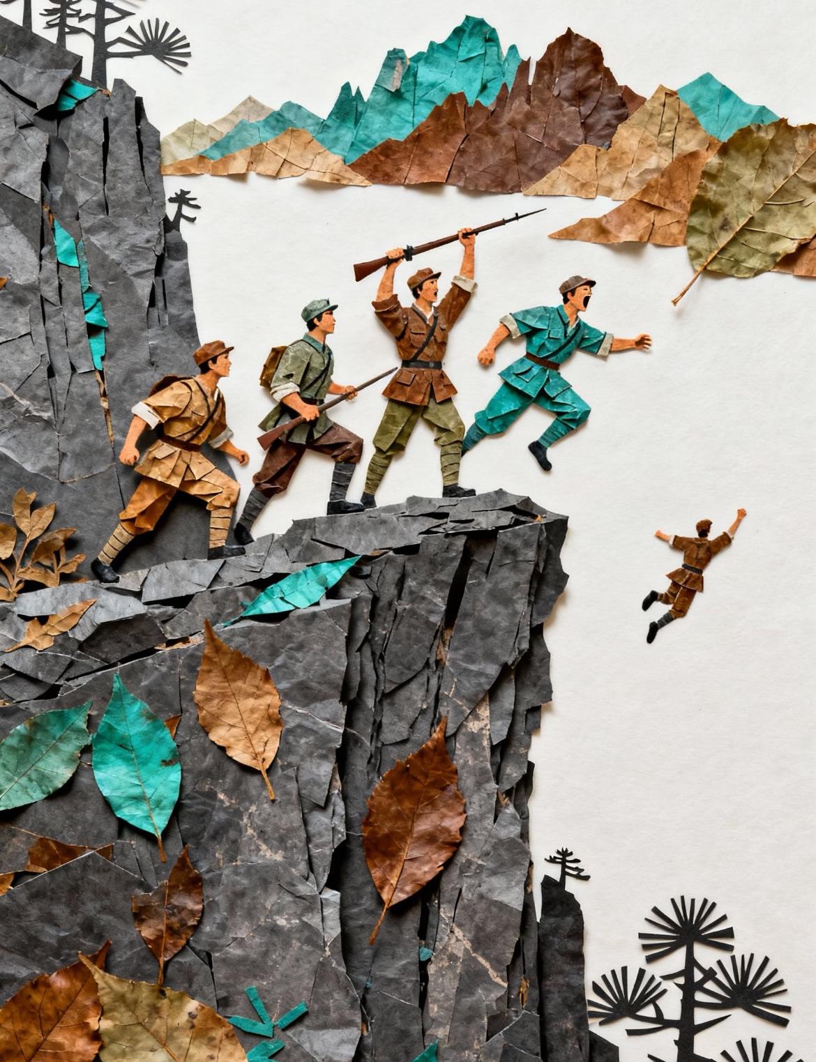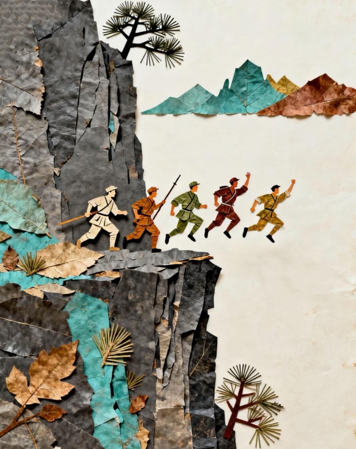 落叶版·狼牙山五壮士 记忆不老,精神永存。 用落叶画纪念红色故事!