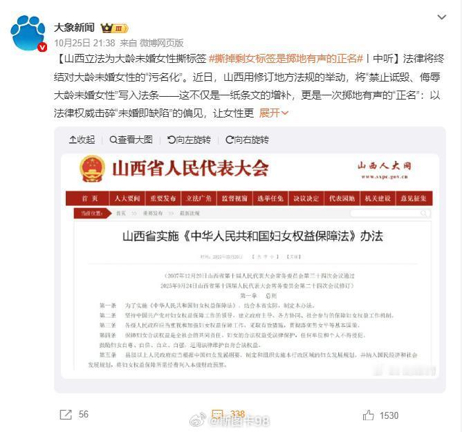 山西不是立法禁止诋毁歧视大龄未婚女性而山西一些地方发放结婚补贴又要求女方35岁以