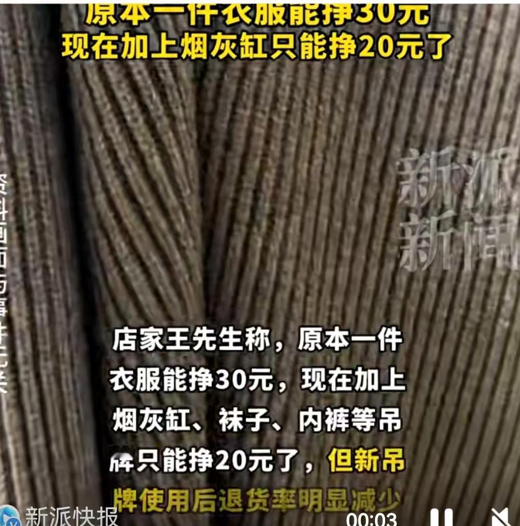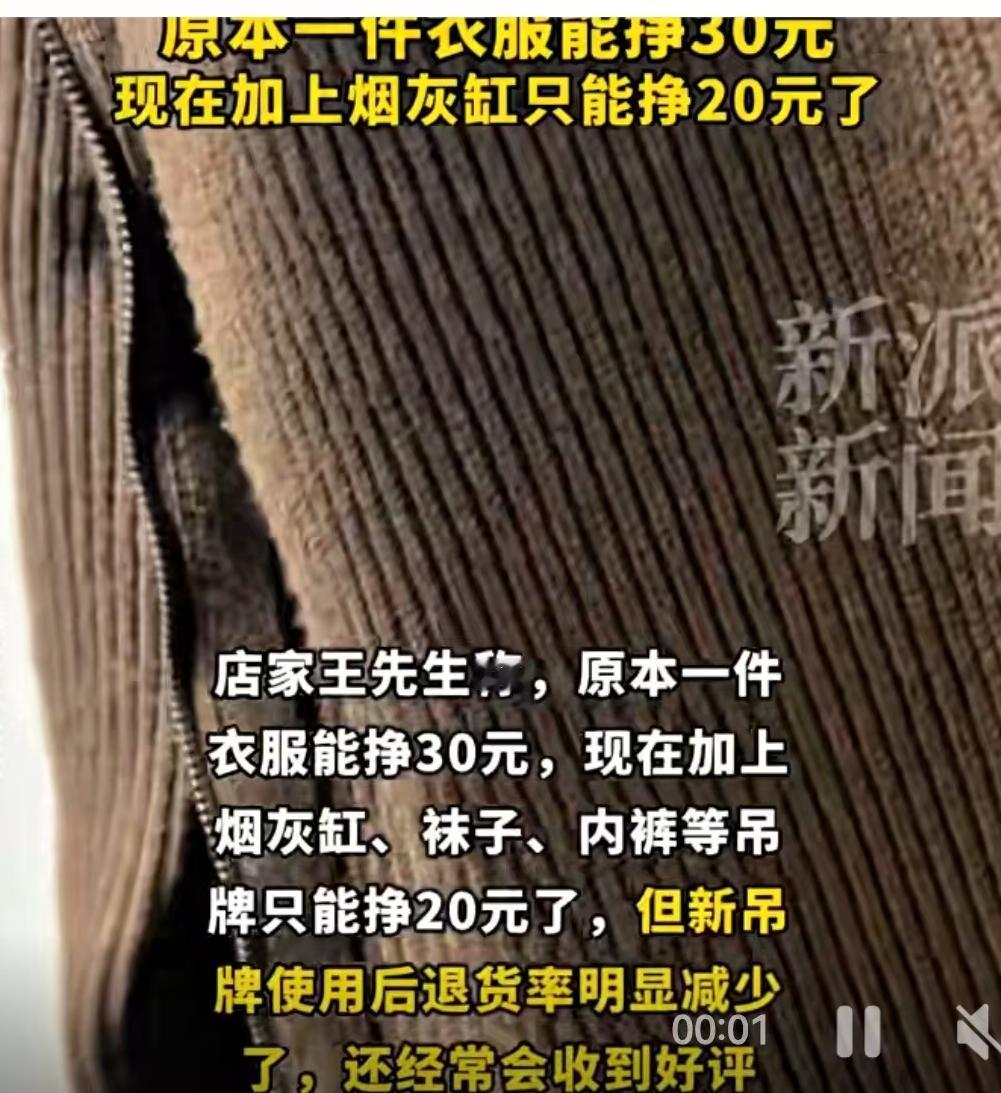 11月24日,江苏常州一男装店主为减少“蹭穿退货”,将烟灰缸、鼠标垫、袜子等物品作为服装吊牌,破坏后无法退货。新措施使退货率明显下降,但单件利润减少10元,同时因实用赠品属性提升用户好评。‌‌ 这种方法真能防蹭穿退货吗 2597人参与 截止日期 11-30 能,赠品谁不喜欢 不能,想退咋都会退 平台可以设一个买家的退货率指标...  其实退货中占大头的是女性,因为...  男装退货率20%,这里面还有不少...  男装退货率本来就很低 买大了就...  是提醒女装店可以用烟灰缸  男装本来就很少退货啊  是退货少了还是买的人少了?别人...  原本就是网友看到女装有大吊牌,...  这个热搜登上来的意思是,女装店...  礼仪之邦文明古国礼仪之邦文明古...  赞 退货率减低 女的用烟灰缸砸你们...  现在都是宣传把更衣室搬到家,减...  赞 买衣服送一个烟灰缸,如...  赞 男装退货率本来就很低,这样几乎...  赞 说到底还是平台想吃两头,两头的...  我甚至看到很多女的因为这事情故...  抖音上面顾客许愿商家把吊牌改成...  现在衣服版型太差,不得不退  做巨大吊牌阻挡的不是收到试完不...  退货减少可能是销量减少了  我基本很少很少退货换货,买东西... 赞 这是真实消息吗?男装店主会自制...  见过一个同事,每天买七件退六件...  不抽烟咋办  女装才是退货大头  男的买衣服退货的少,比方说我买...  赞 衣服品质必须要好并且跟网店的视...  赞 男装我不知道,女装能干出来把赠... 是因为男装本来就不怎么退货,所...  赞 衣服版型不好 不退留着过年嘛...  赞 平台可以设一个买家的退货率指标...  其实退货中占大头的是女性,因为...  男装退货率20%,这里面还有不少...  男装退货率本来就很低 买大了就...  是提醒女装店可以用烟灰缸  男装本来就很少退货啊  是退货少了还是买的人少了?别人... 原本就是网友看到女装有大吊牌,...  这个热搜登上来的意思是,女装店...  礼仪之邦文明古国礼仪之邦文明古...  赞 退货率减低 女的用烟灰缸砸你们...  现在都是宣传把更衣室搬到家,减...  赞 买衣服送一个烟灰缸,如...  赞 男装退货率本来就很低,这样几乎...  赞 说到底还是平台想吃两头,两头的...  我甚至看到很多女的因为这事情故...  抖音上面顾客许愿商家把吊牌改成...  现在衣服版型太差,不得不退  做巨大吊牌阻挡的不是收到试完不...  退货减少可能是销量减少了  我基本很少很少退货换货,买东西...  赞 这是真实消息吗?男装店主会自制...  见过一个同事,每天买七件退六件...  不抽烟咋办  女装才是退货大头  买衣服退货的少,比方说我买...  赞 衣服品质必须要好并且跟网店的视...  赞 男装我不知道,女装能干出来把赠...  是因为男装本来就不怎么退货,所...  赞 服版型不好 不退留着过年嘛...  赞 说说你的想法... 商户策略实施细节 ‌创意来源‌:受女装商家启发,首次尝试用一次性烟灰缸作吊牌,后根据评论区建议拓展至鼠标垫(42cm×49cm)、内裤等。‌‌ ‌爆单效应‌:鼠标垫吊牌视频发布后,40单秒售罄,累计订单超300件,因备货不足延迟发货。‌‌ ‌商品组合‌:顾客可备注选择烟灰缸、袜子、内裤或鼠标垫之一作为吊牌,成本增加致利润压缩。‌‌ 行业背景与用户反馈 ‌转型动机‌:王先生原从事钢琴维修,因女装退货率高、资金有限转做男装,仍遭遇恶意退货问题。‌‌ ‌双向收益‌:尽管利润降低,但退货率减少与主动好评增加形成对冲,部分顾客专为创意吊牌下单。‌‌