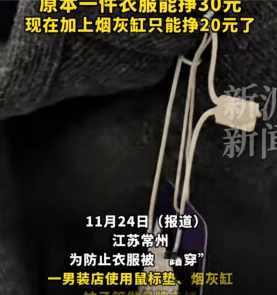 11月24日,江苏常州一男装店主为减少“蹭穿退货”,将烟灰缸、鼠标垫、袜子等物品