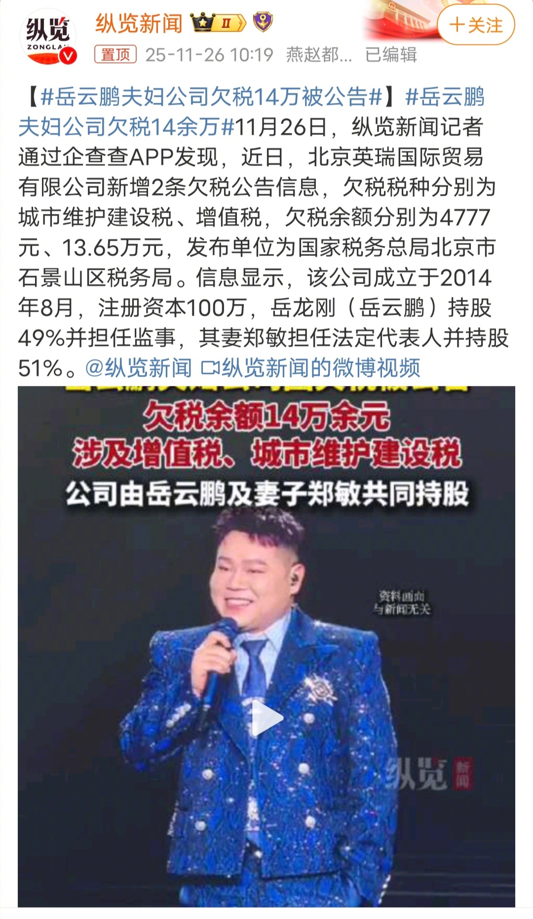岳云鹏夫妇公司欠税14万被公告对于明星来说,14万又不多,赶紧交上吧,别因小失大,如果因为偷税漏税不能演出了,后悔就来不及了。岳云鹏夫妇公司欠税14余万