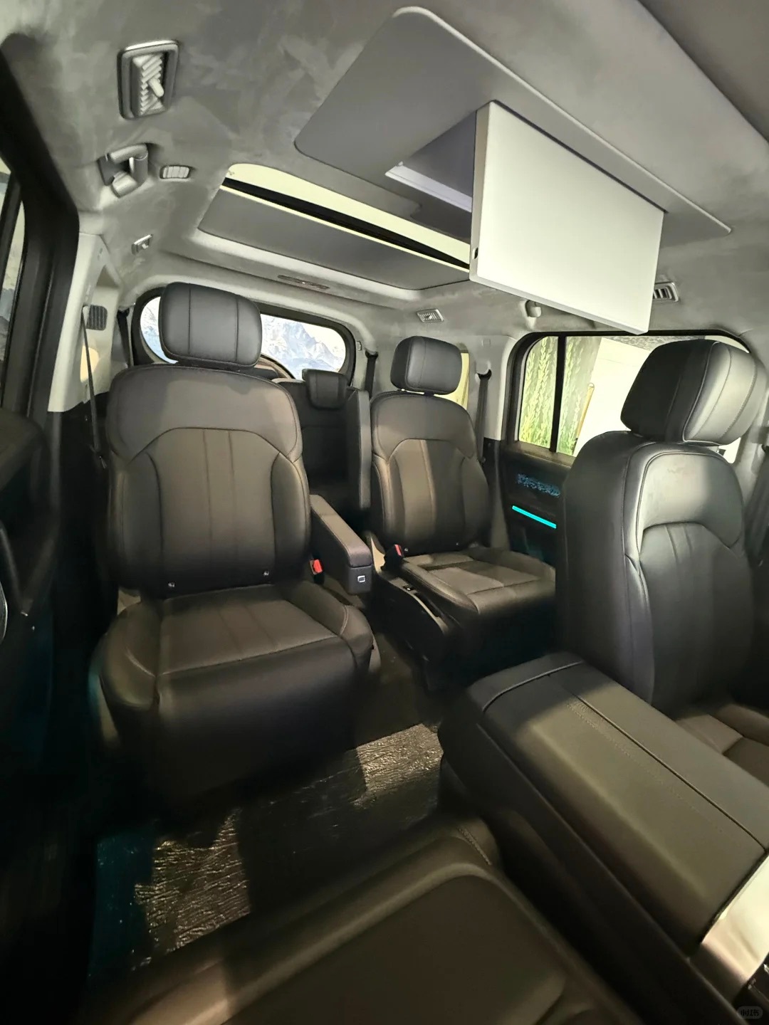 30万➕级别的纵横g700!座位5座6座可以选,全系电动座椅,中配起步就是和劳斯莱斯同款音响:莱斯康品牌的驱动方式:混动四驱,马力694匹,中配开始可以升级空气悬挂,后面有220v电源接口,官方续航里程1400,预计应该会打折一点,而且全系带大梁,后面两个拖车钩,底盘下面可以加装带房车钩或者外挂底盘与越野配置:预计采用前麦弗逊+后多连杆独立悬架,部分版本可能升级专业越野调校;具备经济/运动/越野等多模式切换。此外,配备后桥差速锁、坦克掉头、蠕行模式等功能,提升复杂路况通过性