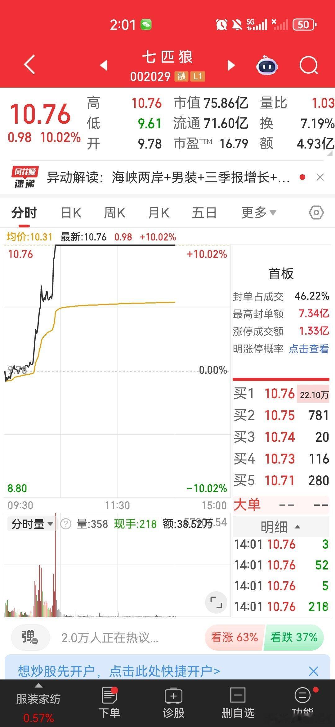 $七匹狼 sz002029$ 会连班吗?家人们评论区聊聊