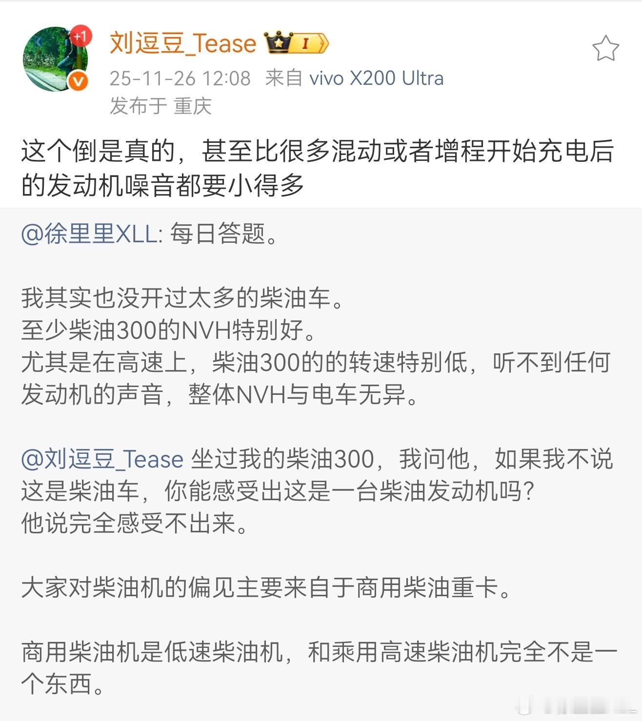 这就是为什么我几乎不推荐购买汽油坦克300的原因。在乎带电你就买Hi4-T。不想带电就买柴油。汽油版本相比之下真的没有任何优势。最大的优势就只剩便宜了。柴油是可以和Hi4-T打的有来有回的。比如高速更省油,比如更轻,比如轮端扭矩更大,比如更有情绪价值。汽油相比柴油的优势是什么?