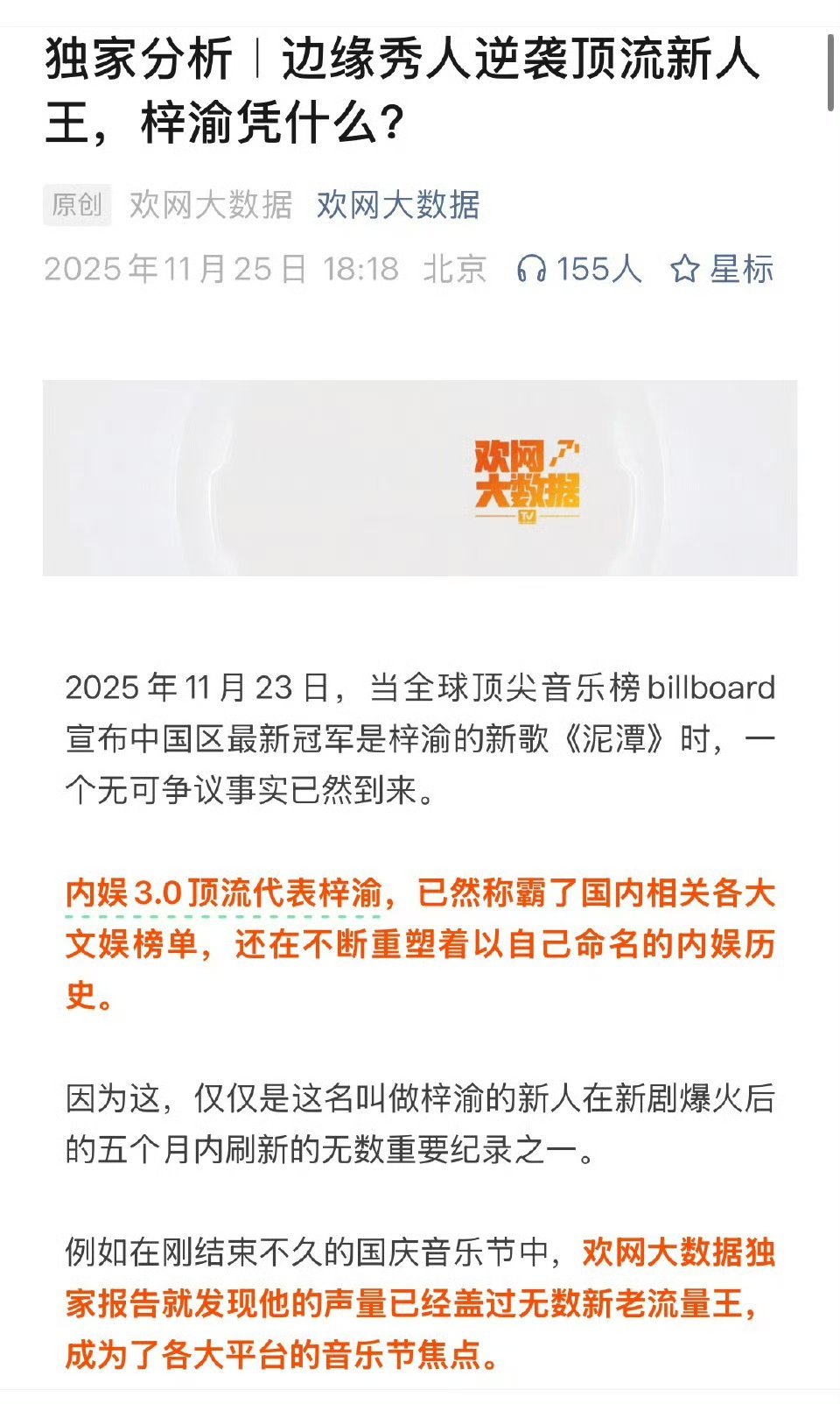 欢网认证梓渝3.0顶流 恭喜梓渝成为欢网3.0顶流!愿你永远保持初心,在热爱的领