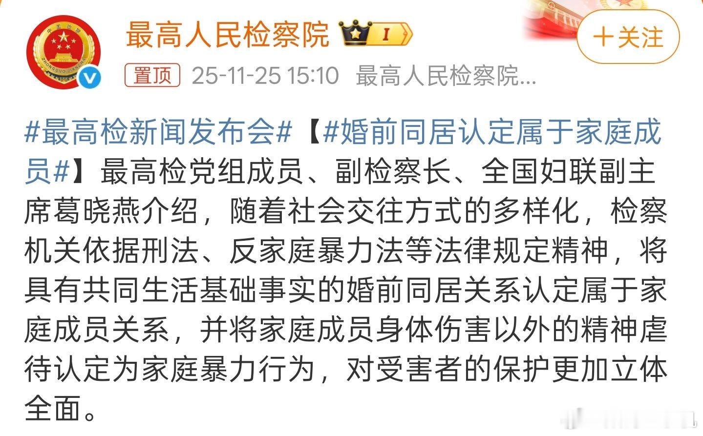 婚前同居认定属于家庭成员大家不要跑题,这里的出发点是为了保护未婚同居,被家庭暴力的情形,正常没有暴力倾向的未婚同居,没事儿也不会有人去抓你