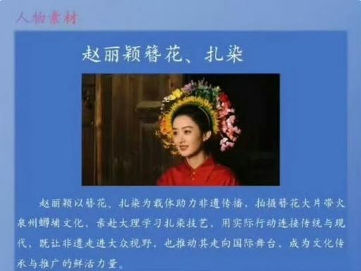 赵丽颖簪花被用作考公素材! 赵丽颖除了影视实绩之外,她在其他领域也有一些出圈实绩,她的簪花围确实是真的大出圈,带动泉州旅游业发展,帮助当地老百姓增收,也确实起到了文化输出的作用,这是杂志实绩,在代言方面,她与浪琴的合作,让很多人相信了《优雅并非天生》的理念,对于很多女性来说,也挺有意义的。
