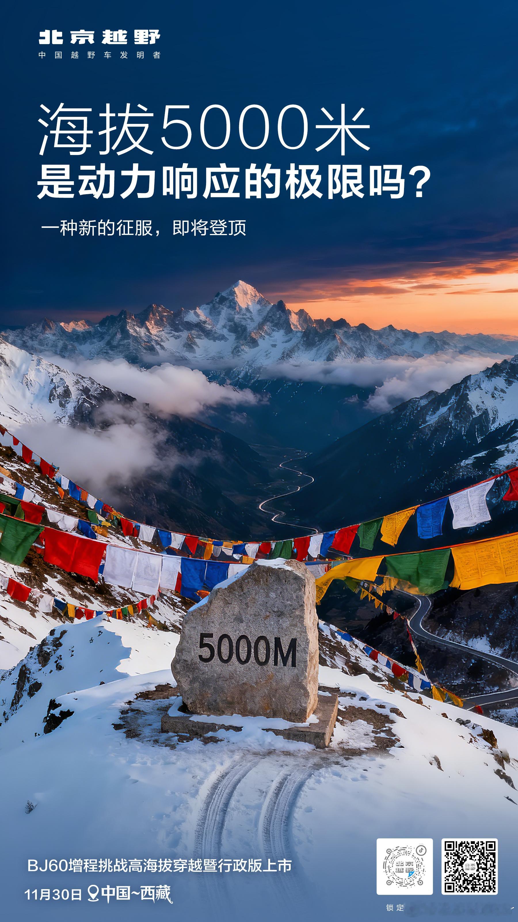 海拔 5000米是动力响应的极限吗?BJ60增程挑战高海拔穿越暨行政版上市11月30日敬请见证让高原再无禁区