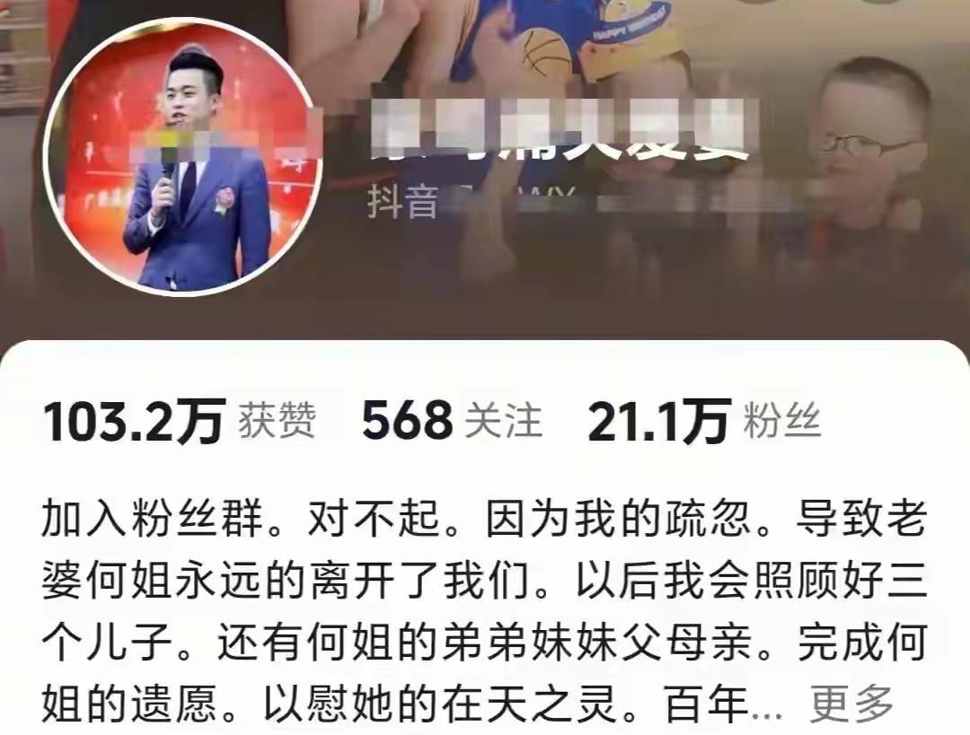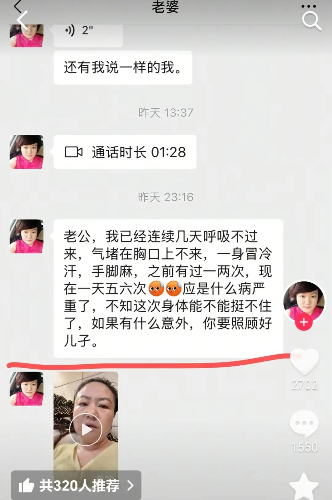“我靠,别睡了,现在妈妈都......”,这是何姐儿子发给她老公的求救信息,当时何姐老公刚刚睡觉16分钟,就在这短短的时间里,何姐因为心梗去世了。 广东何姐30多岁是个网红,她和老公不是原配,在他们结婚之前老公有一个儿子,后来结婚后又生了两个孩子。夫妻两个经营媒体号,吸引了一些粉丝的关注,经常带货直播。 11月23日11时16分,何姐给老公发信息,表示自己呼吸不畅,冒冷汗手脚麻木,一天之内出现了五六次同样的症状,意识到自己得了大病,万一挺不住,儿子就由他照顾了。并拍了视频发给老公。 发出去的消息犹如石沉大海,大概在24日凌晨01:51分时,她的儿子给父亲发信息急得都爆粗口了还是无人应答,就这样何姐既没有联系其他家人也没有拨打120,只有处于对老公的信任,因心梗发作走了。 令人遗憾的是何姐作为一个成年人要有自救意识,都病成那样了还依旧坚持不去医院,据她老公说当时自己在景德镇直播,因为太累了就在11点的时候就睡着了,导致没有听到何姐的求救信息。 16分钟的时间,她的老公睡得可真香,错失了抢救的黄金时期。 失去爱人本应是一件痛苦的事情,不说肝肠寸断,起码得哀伤得有吧,正常人哪有心情发视频,但她老公就会。 何姐刚去世没几天,她老公就发视频整理她的遗物要捐赠出去,这是不给自己留一点点念想啊,更过分的是想把何姐媒体号上的粉丝转到他的账号上,甚至发视频博流量,榨干最后的价值。 都说半路夫妻硬如铁,但半路夫妻恩爱的也比比皆是,何况有了共同的孩子。 30多岁的年龄真的太可惜了,她的症状符合心梗的特征,应该第一时间拨打120电话的,不应该强撑着。同时也警告我们无论身体哪个部位不舒服,就立马就医,别相信自己能硬挺过来,悲剧往往因为没及时就医发生的,切记!