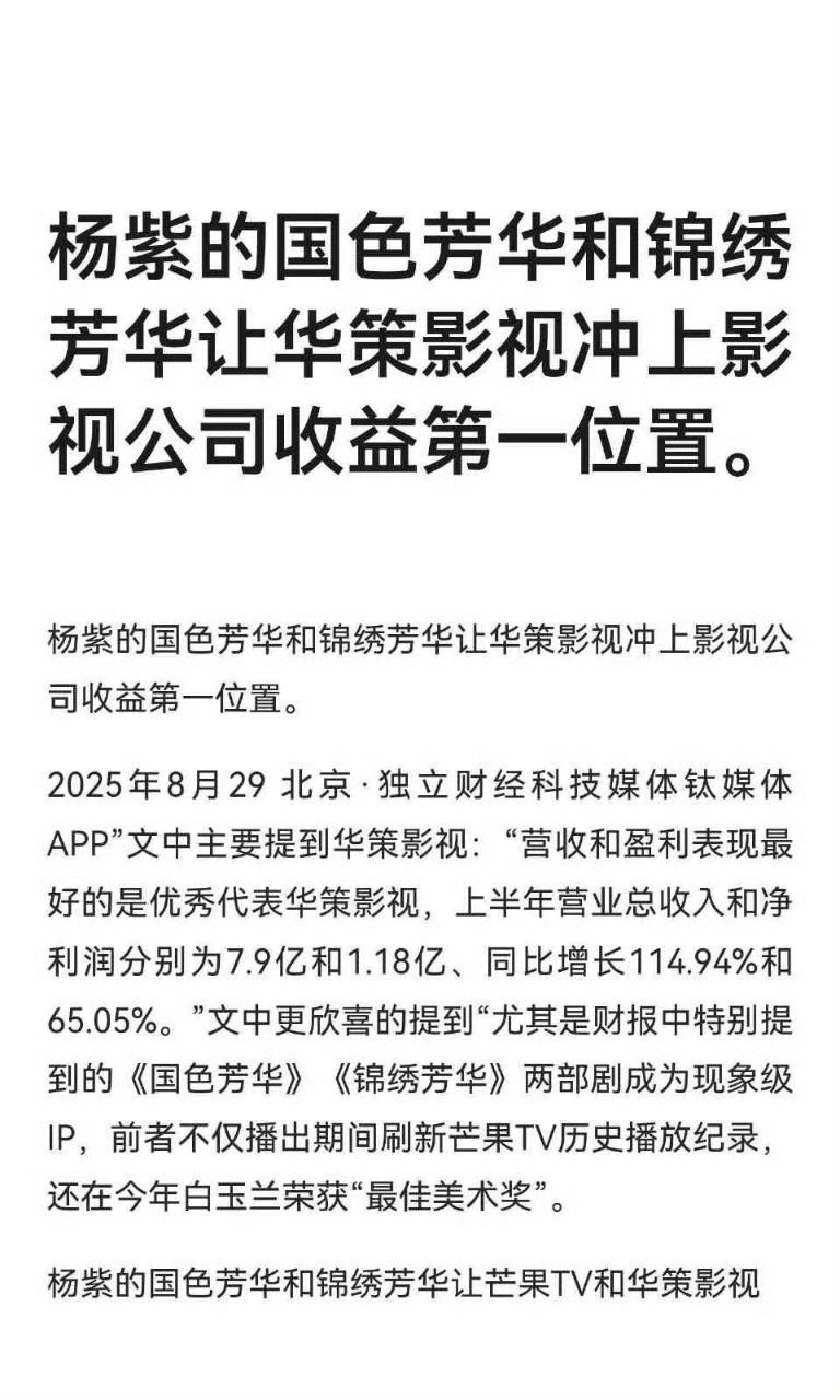 杨紫国色芳华芒果TV史冠,拉动🥭用户飙升42.7%!前无古人后无来者