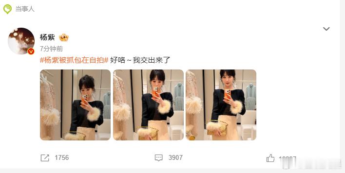 杨紫交出来自拍的场景引发关注,被抓包自拍的瞬间俏皮可爱,自然流露的性情传递出生活气息。杨紫发被抓包自拍杨紫交出来自拍了