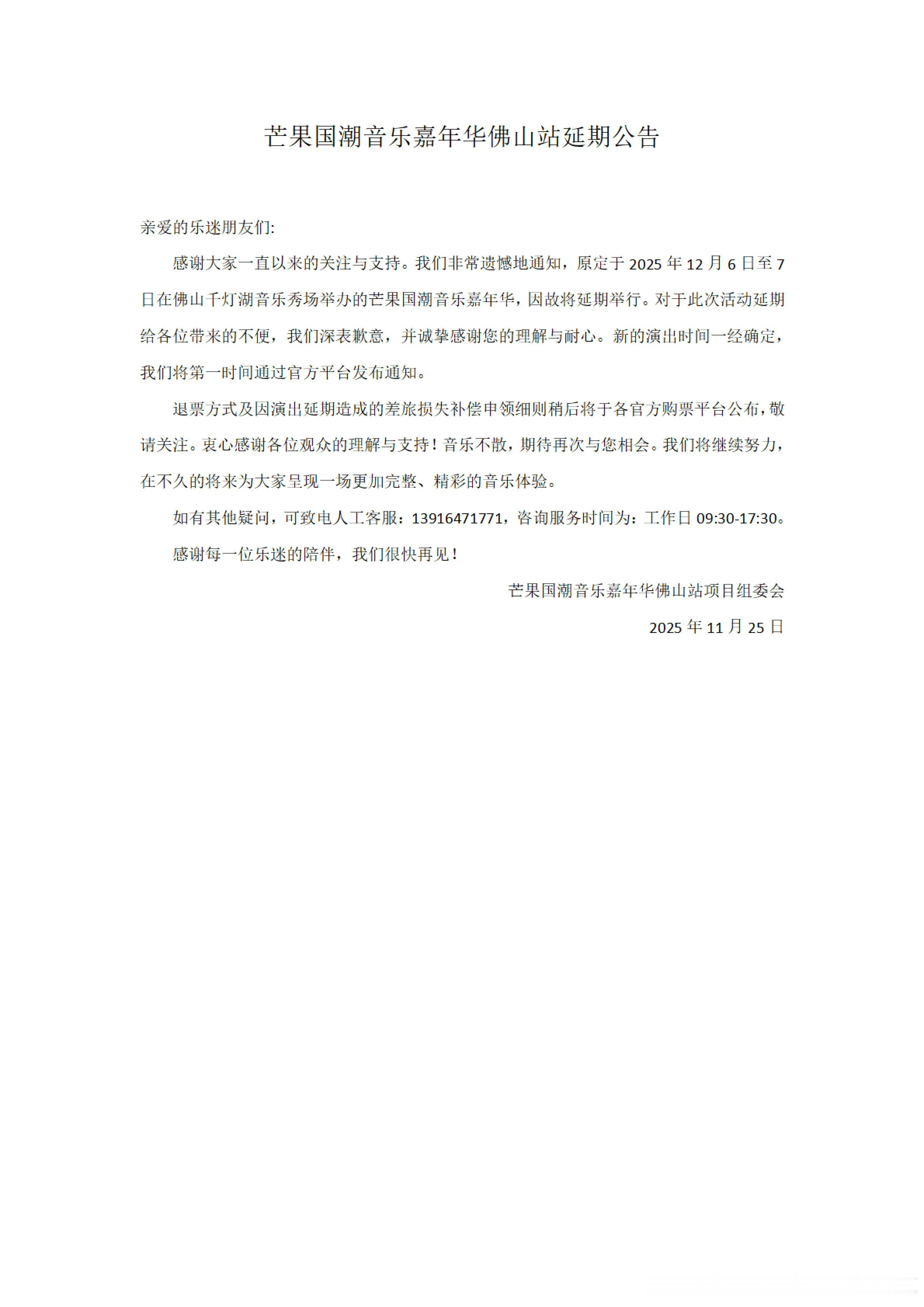佛山芒果国潮音乐嘉年华取消了
