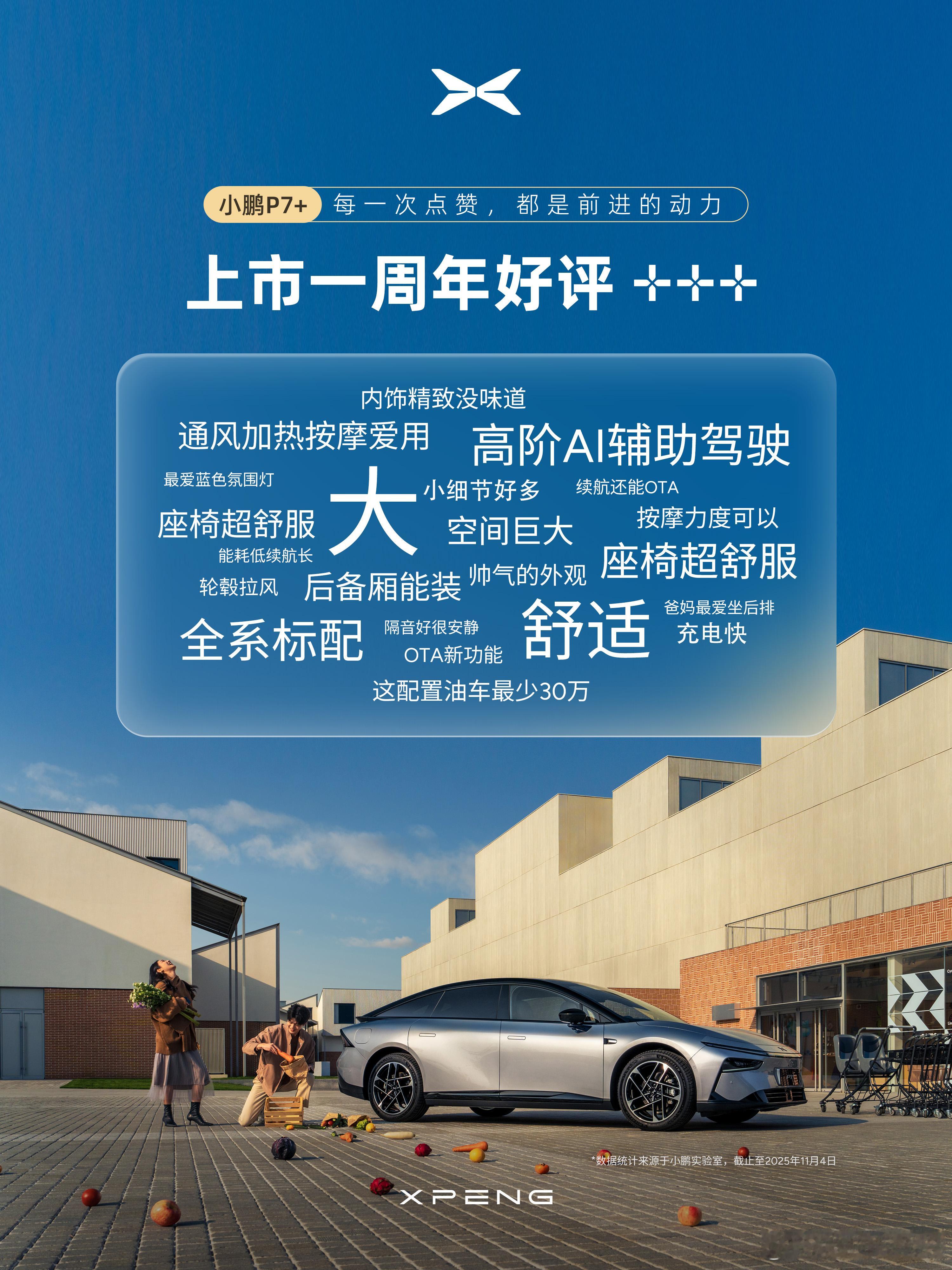 不知不觉,小鹏P7+也上市一年了颜值上没话说,每次见到都觉得很帅上市一周年已赢得近88000名车主信赖,连续12个月蝉联细分市场销冠小鹏P7+上市一周年月月是销冠