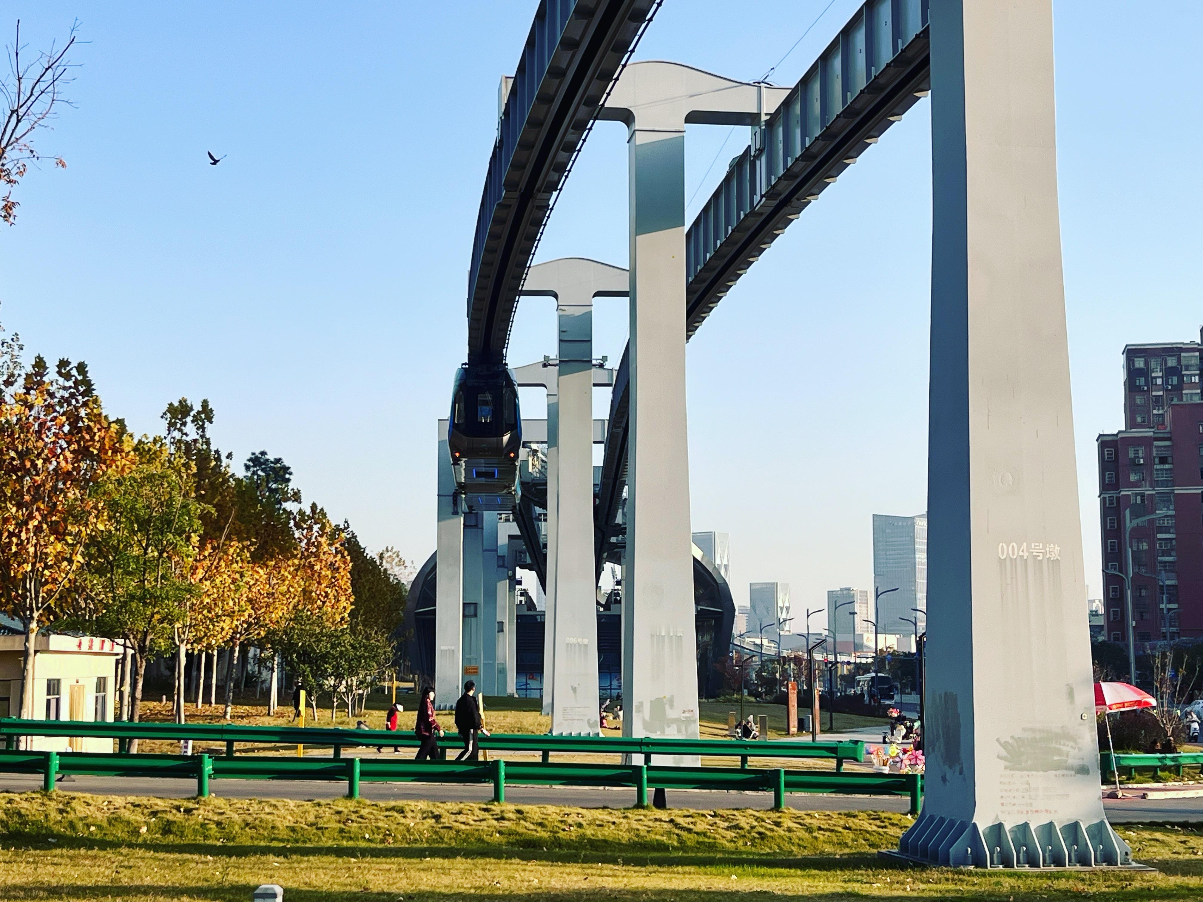 武汉进入最缤纷彩叶季终于看到了空轨的尾巴,来自九峰山动物园门口。